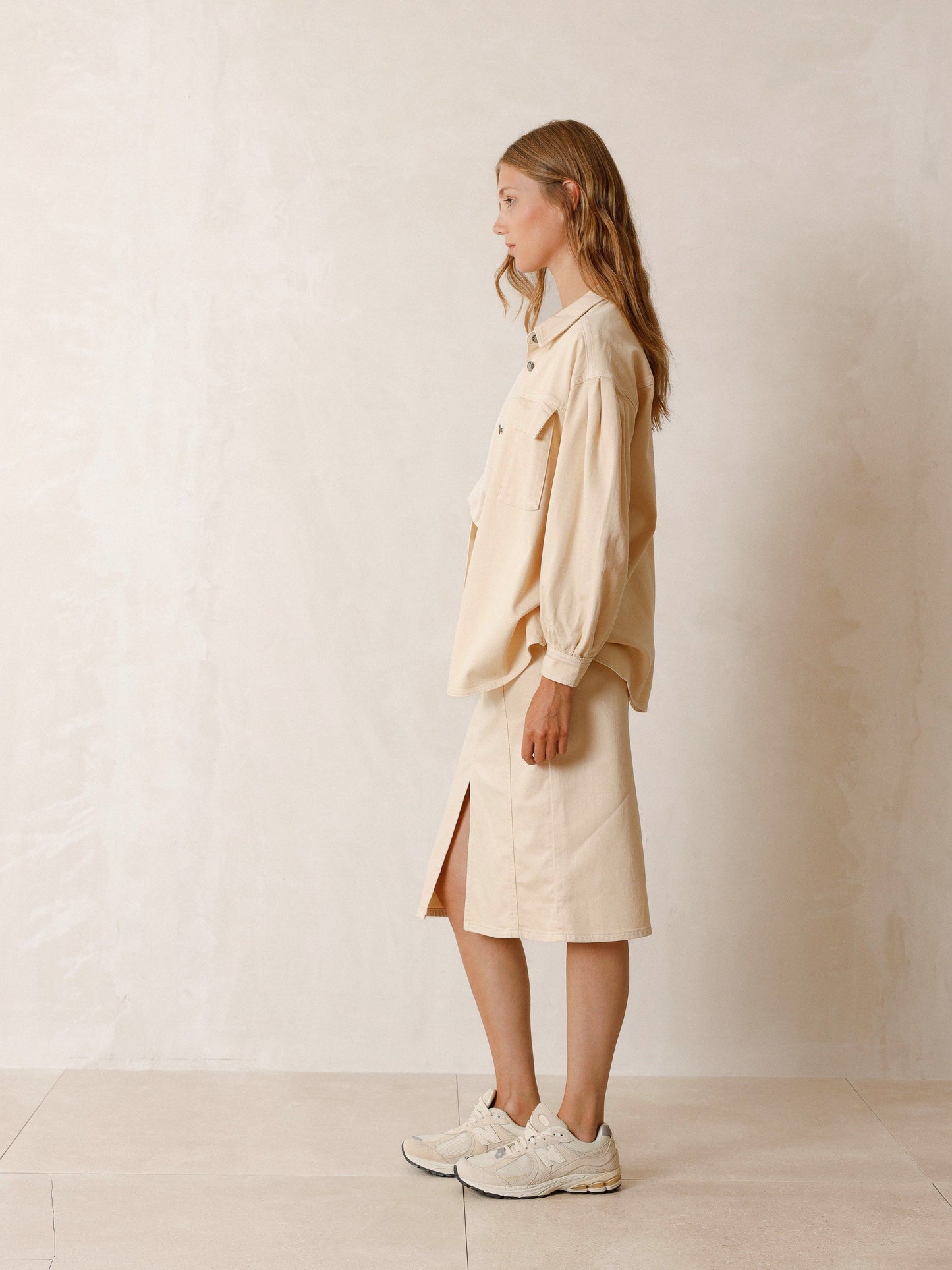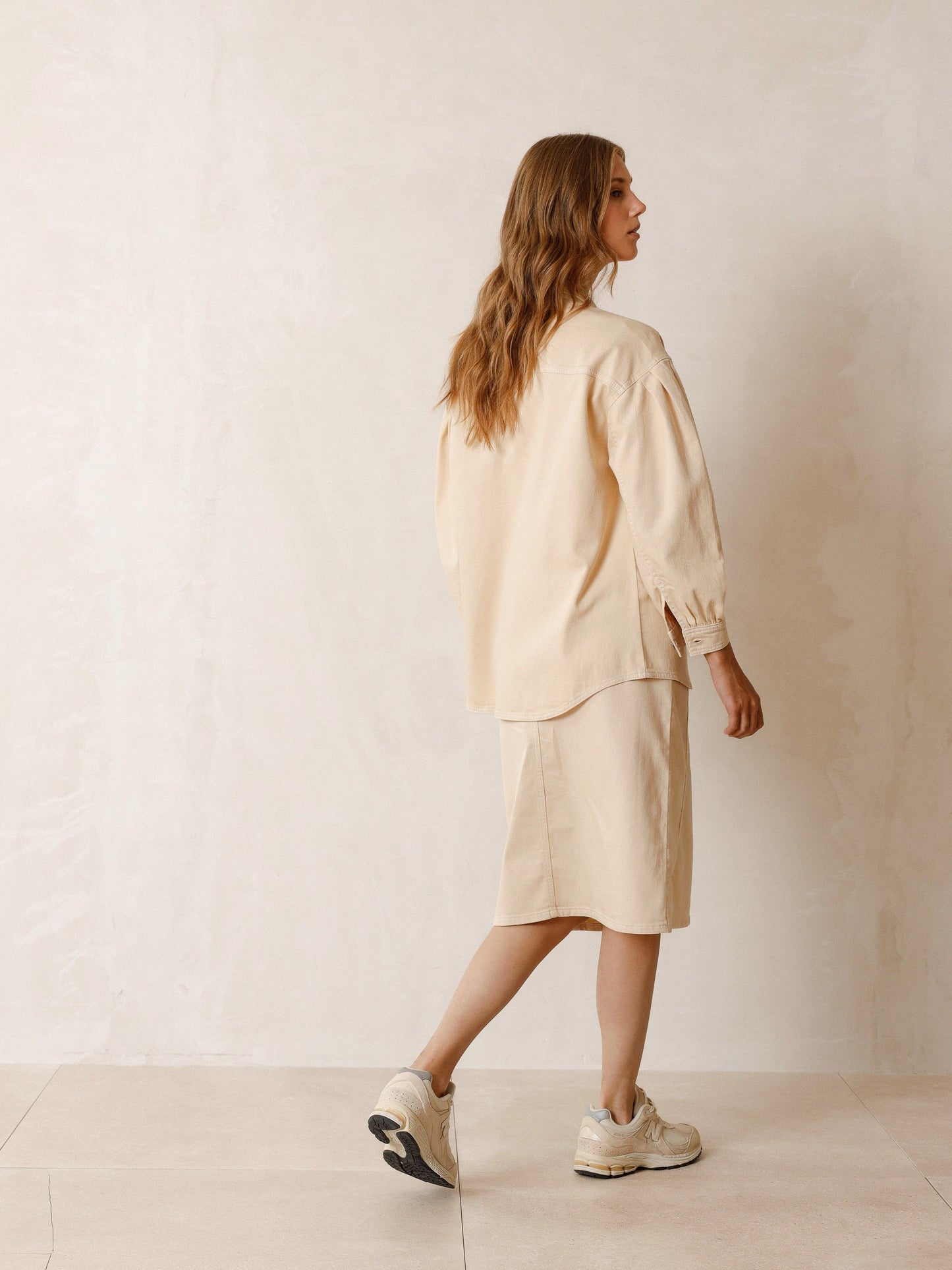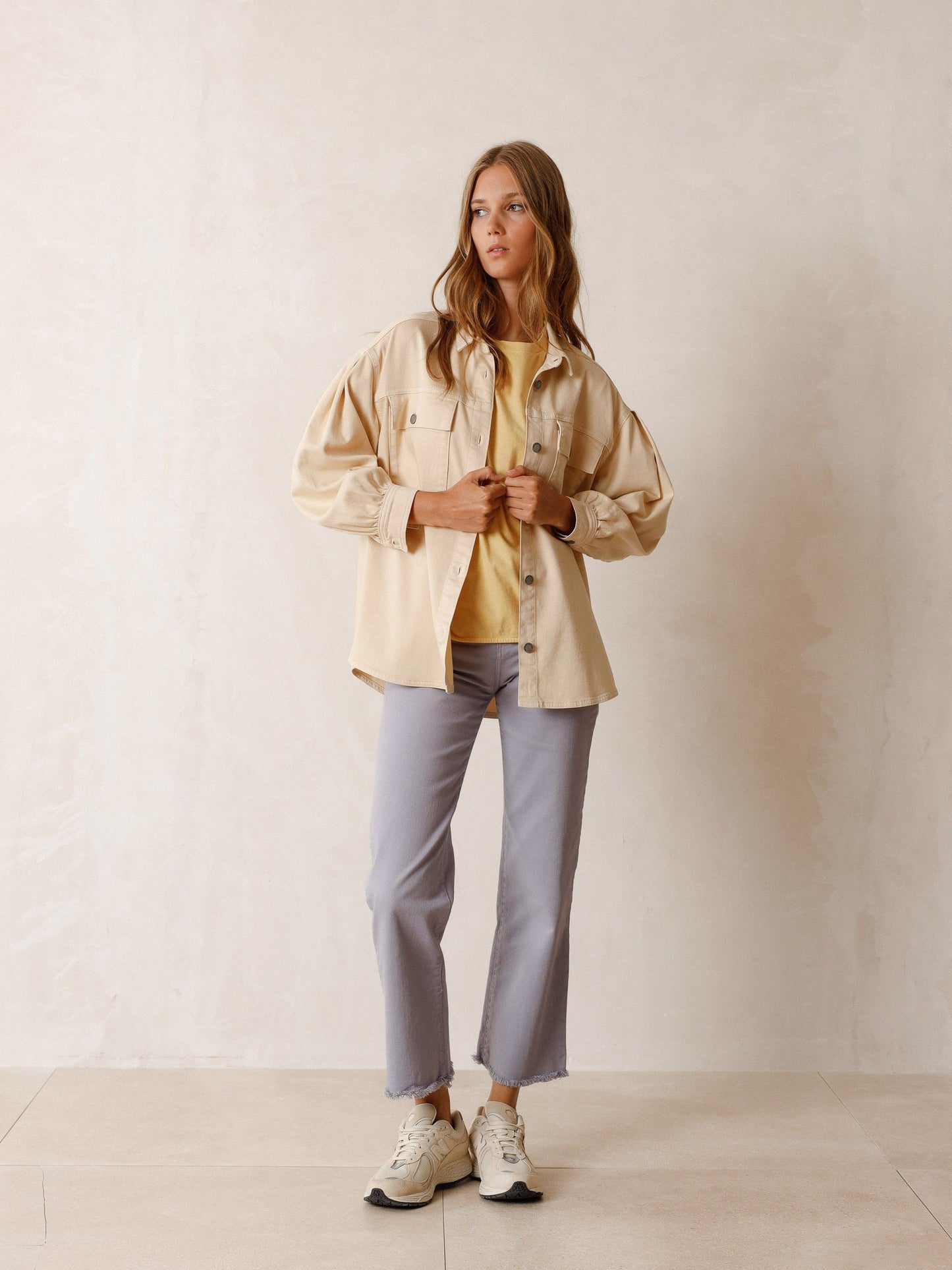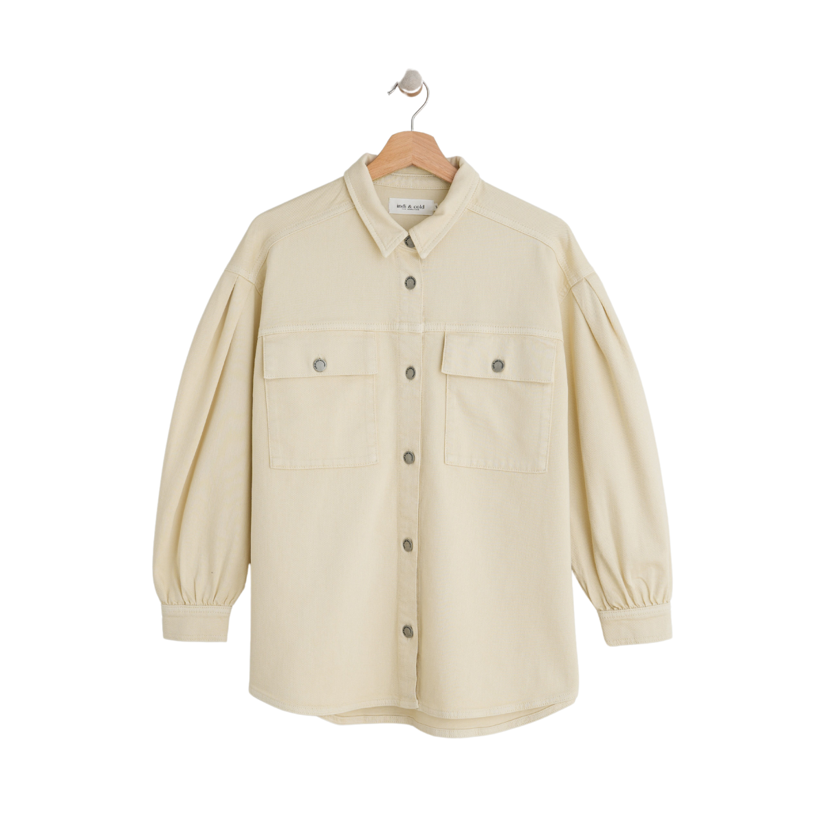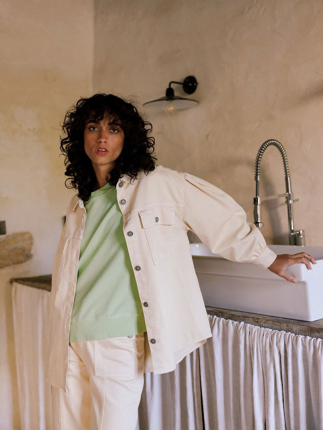 Having a reliable overshirt is indispensable in any season. It's that piece you can carry in your bag for when it gets a little cooler. Balloon sleeves give this cotton denim overshirt a special touch. The cut is boxy and slightly wide. An enzymatic finish provides a distressed effect we love.