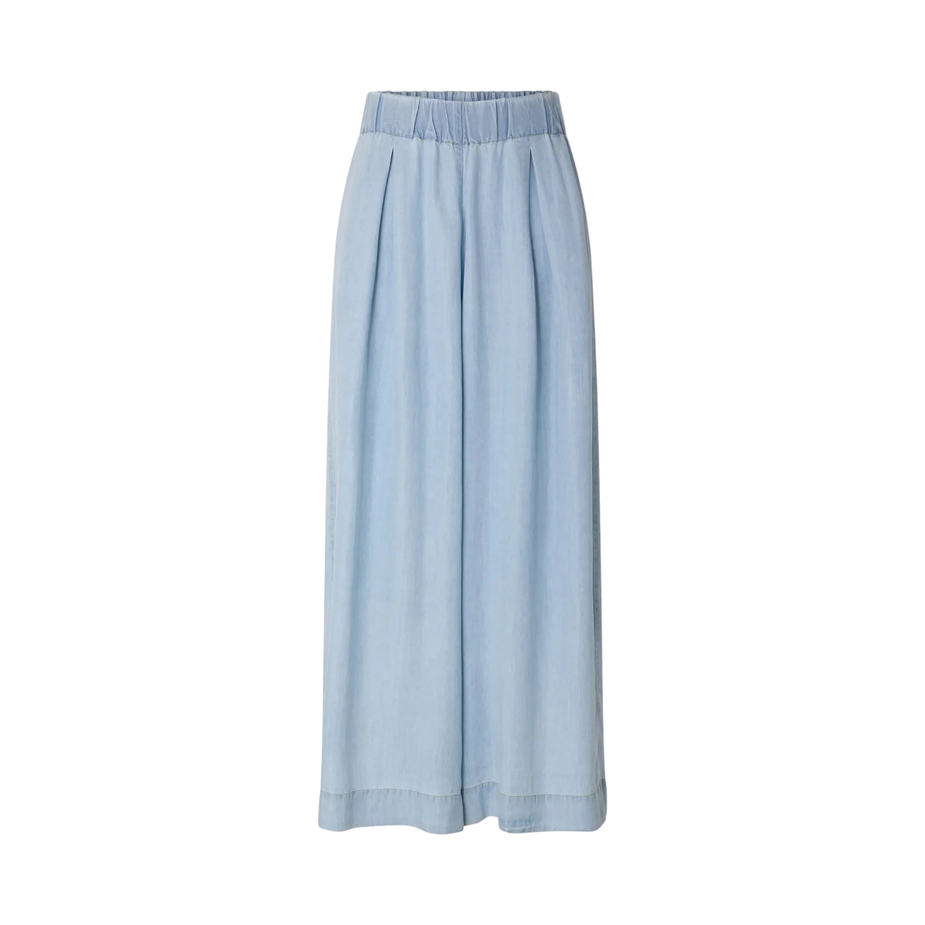 Loose-fitting 7/8-length trousers with elasticated waistband in lightweight lyocell twill crafted from indigo thread, woven in Spain.