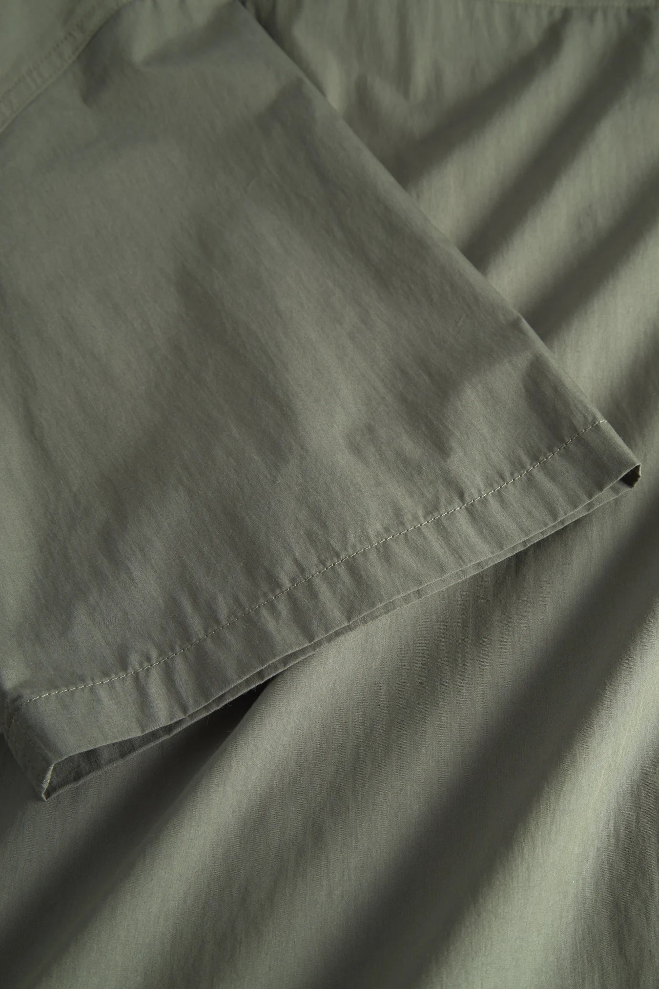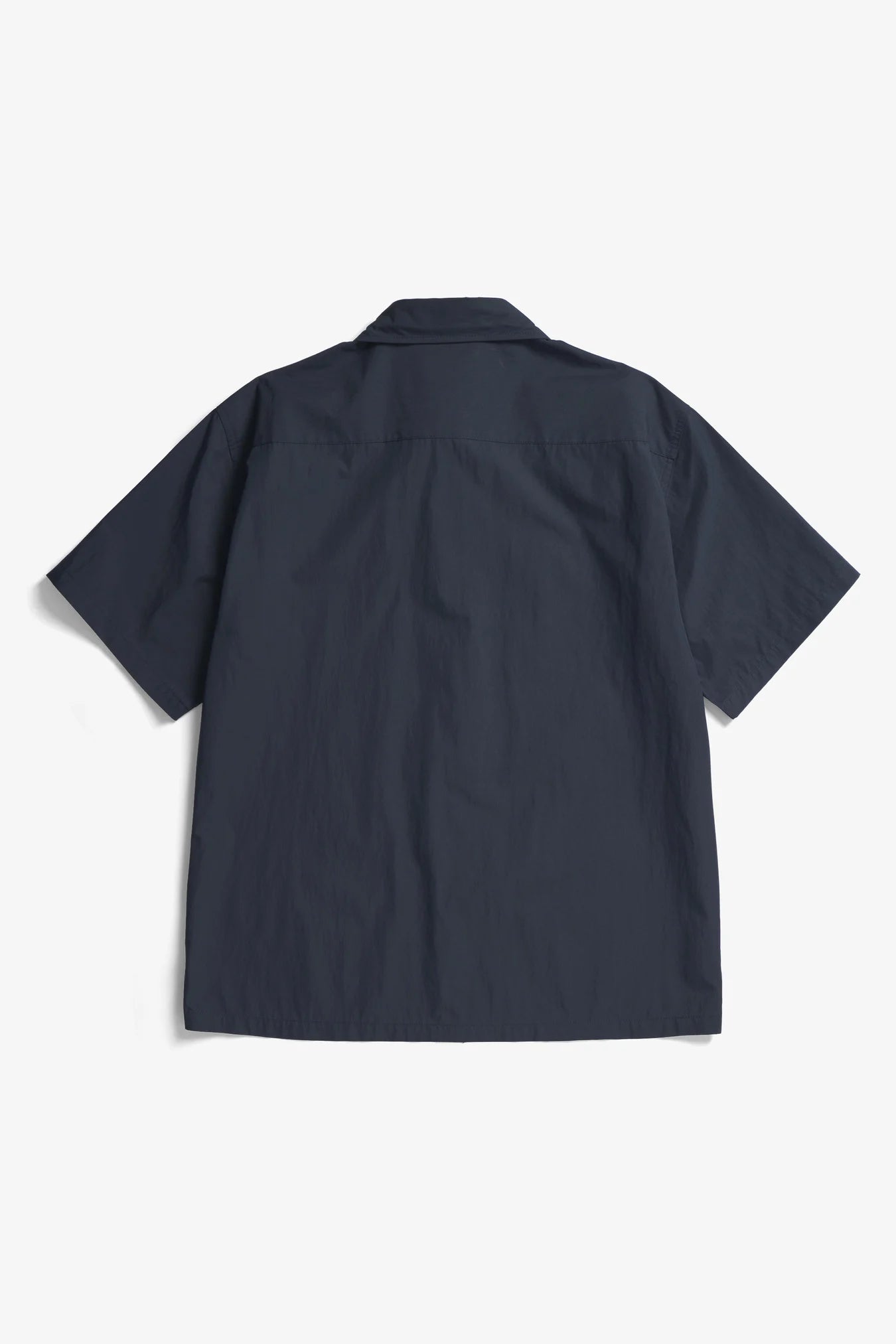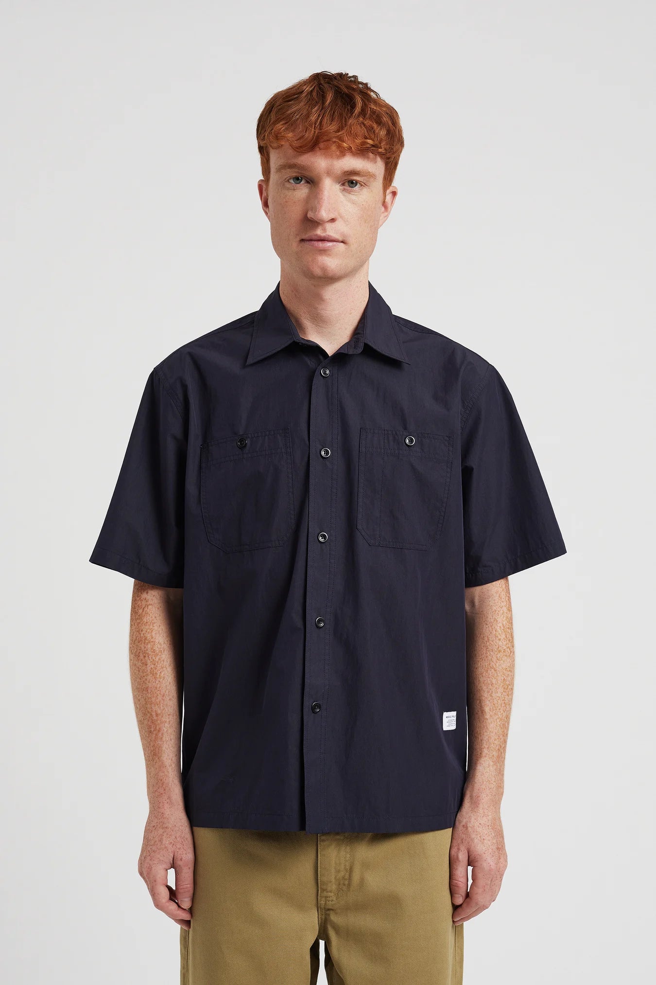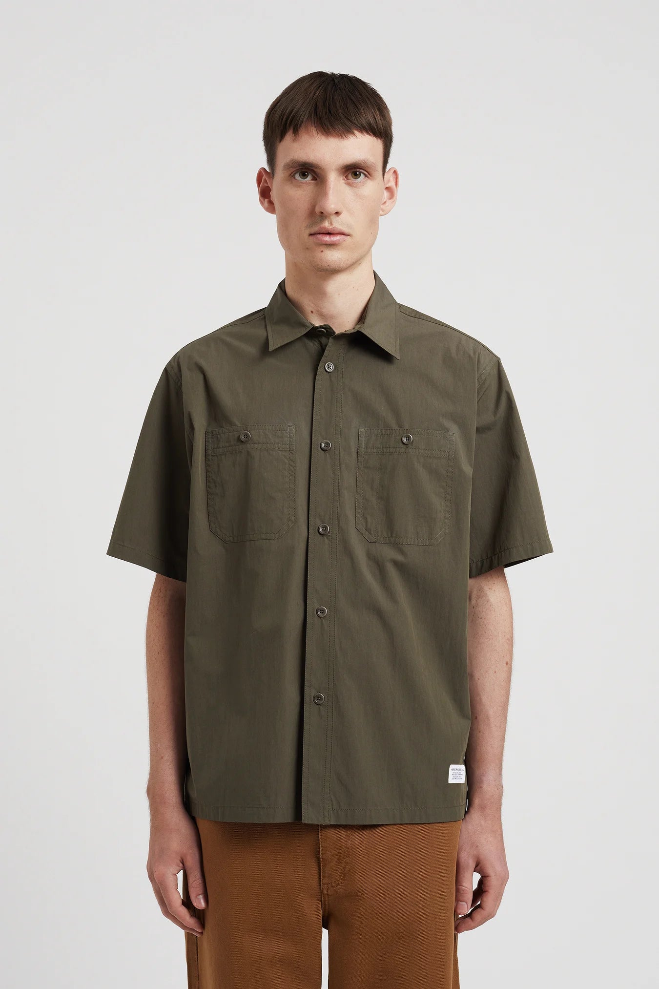 A regular fit short sleeve shirt, cut in a light and crisp cotton nylon poplin cloth. The nylon adds durability, whilst the cotton provides a natural handfeel. Features a two chest pocket construction. This shirt is finished with corozo buttons.