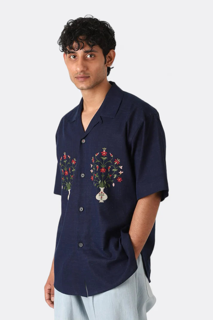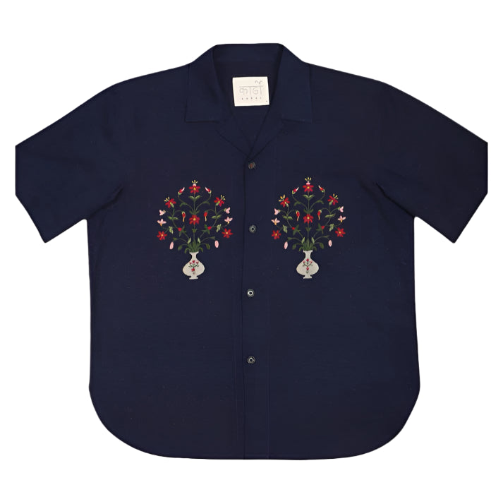 An Oversize Short Sleeve Camp Collar Shirt