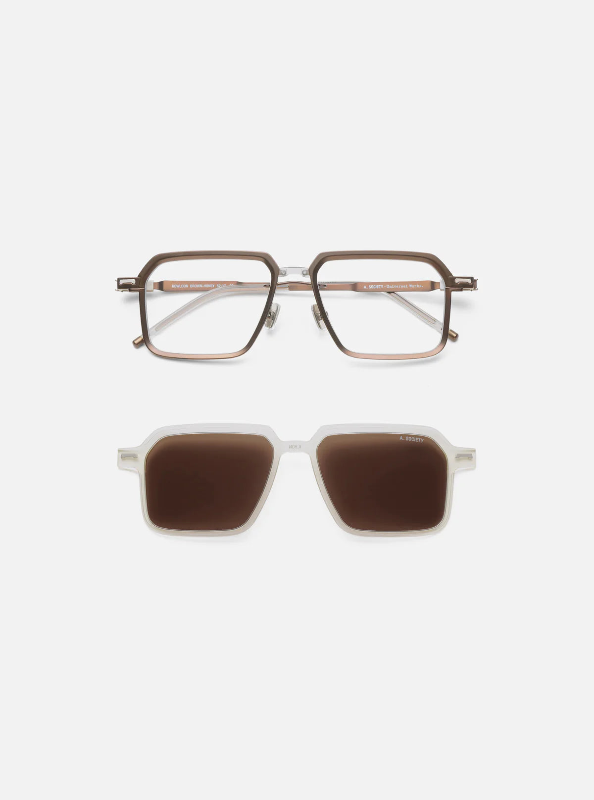 Part of our first ever eyewear collaboration with A. SOCIETY, the Kowloon is a lightweight titanium frame which can be adapted for an optical lens (the lenses they come with are blue-light blocking) with a contemporary removable magnetic sun protection clip frame. The metal frame uses A.SOCIETY’s patented A. Flex screwless innovative hinge system, which gives flexibility for a better fit, and durability.