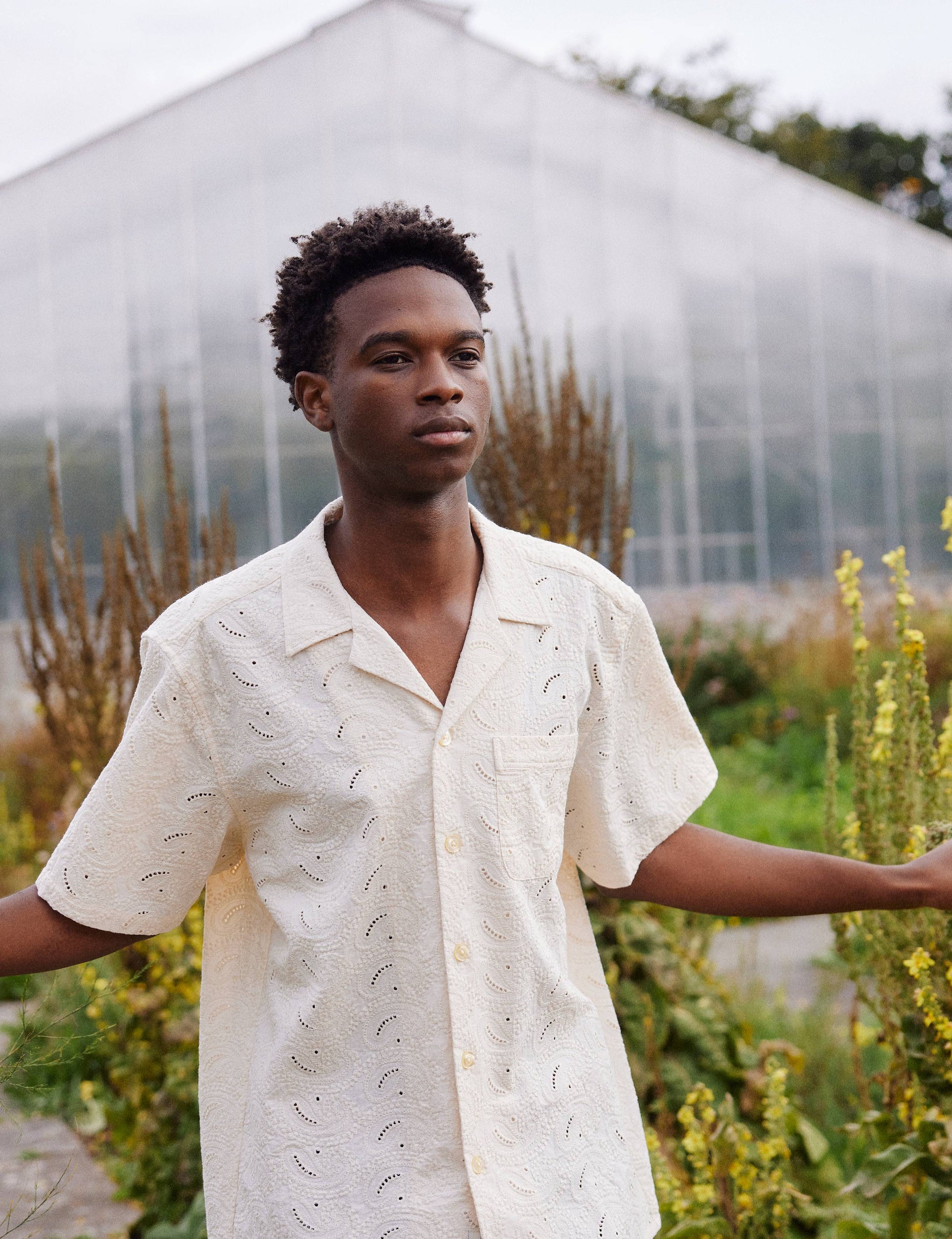 This cream-colored shirt features a sophisticated paisley pattern woven in jacquard, adding texture and depth to its design. Crafted from soft, breathable fabric, it combines elegance with comfort, making it ideal for both casual and dressier occasions.