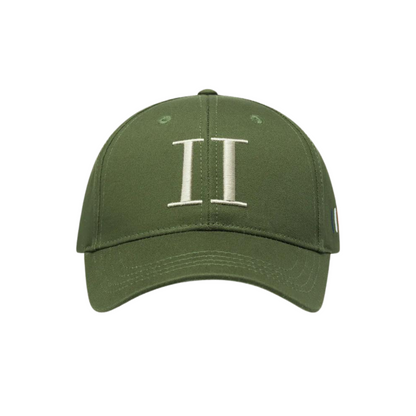This baseball cap in dark ivy green and ivory offers a stylish and eco-conscious design.