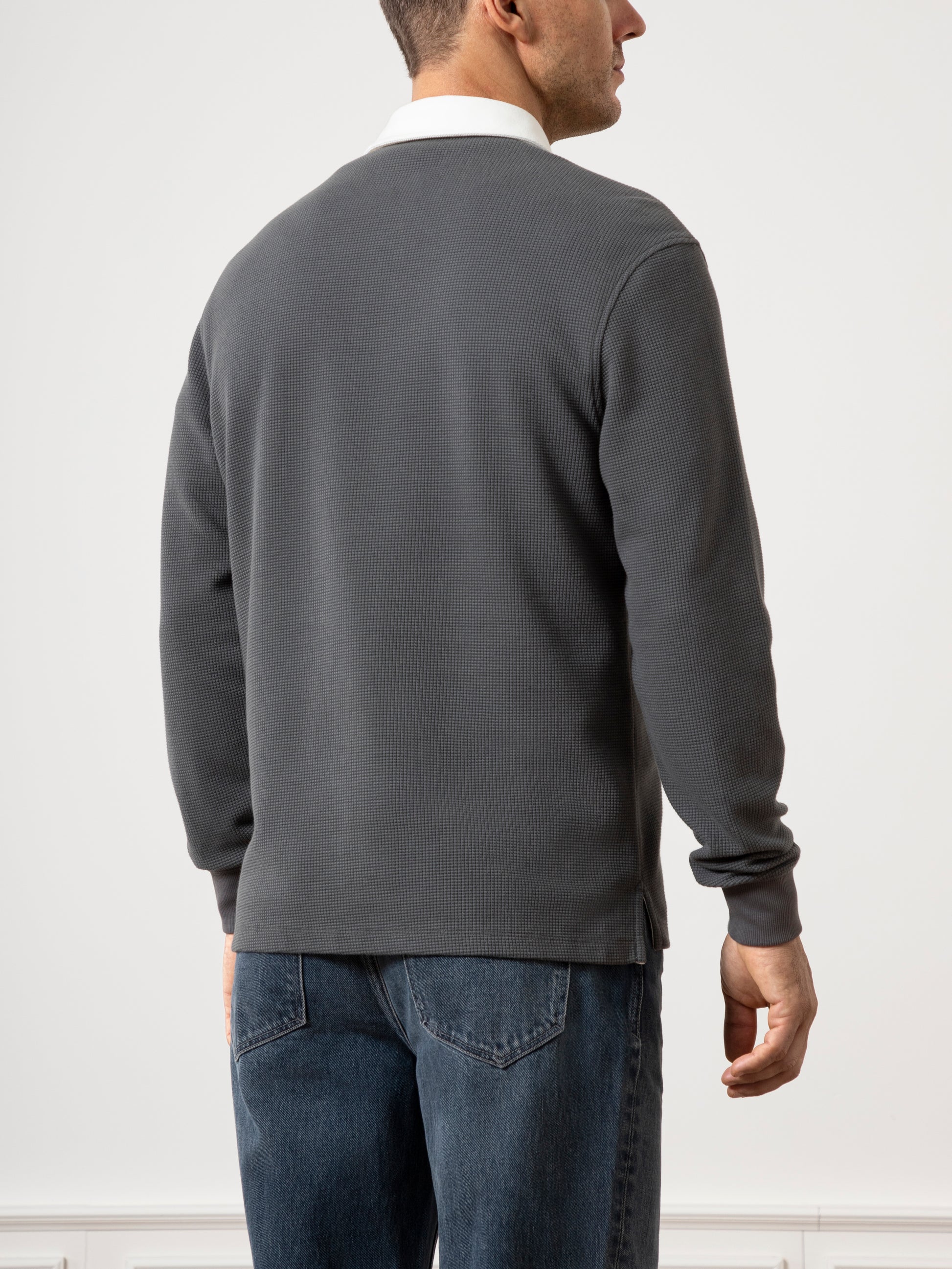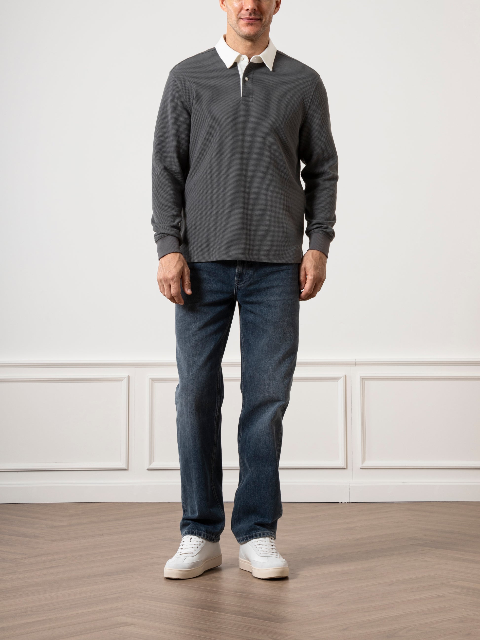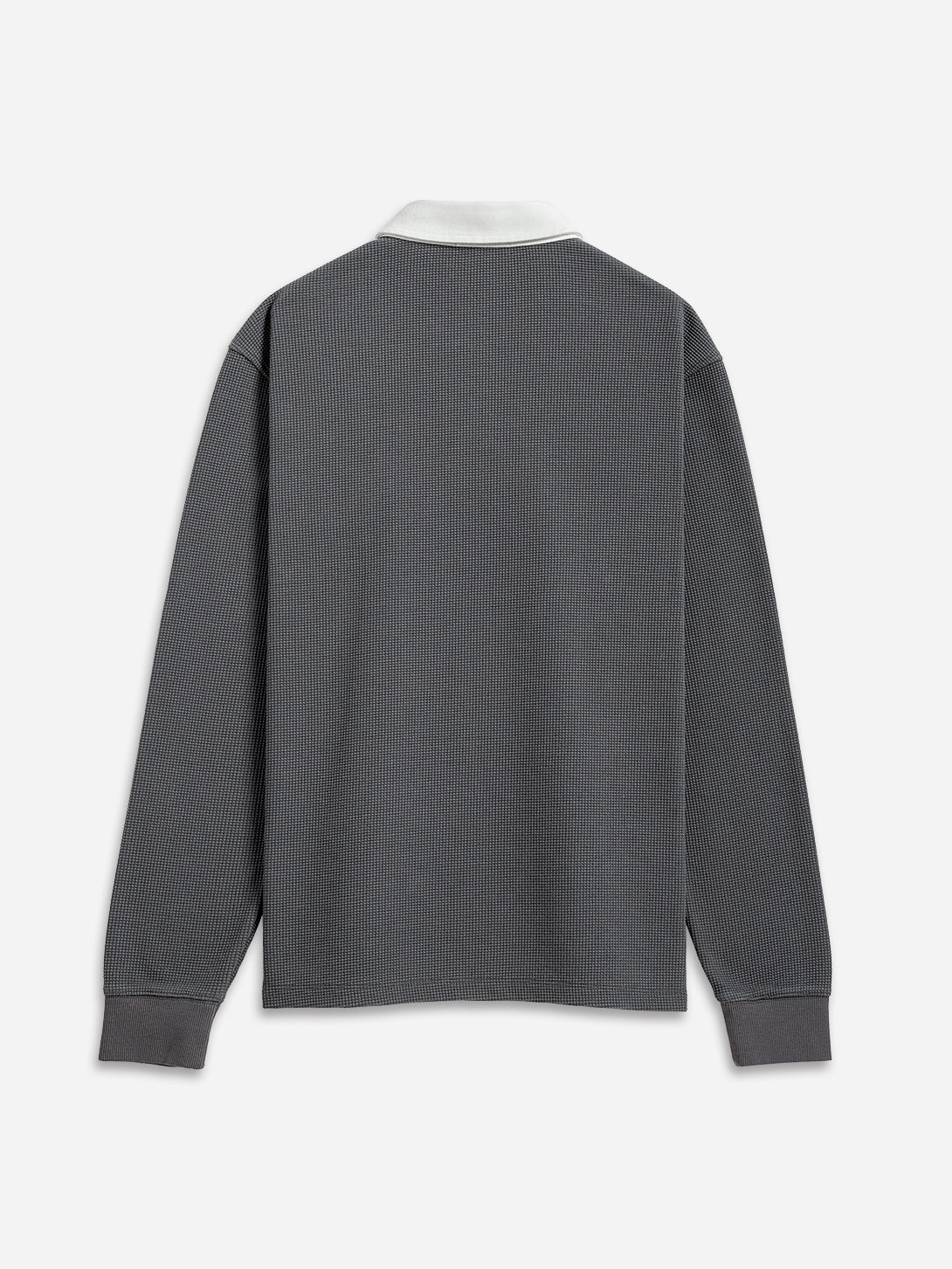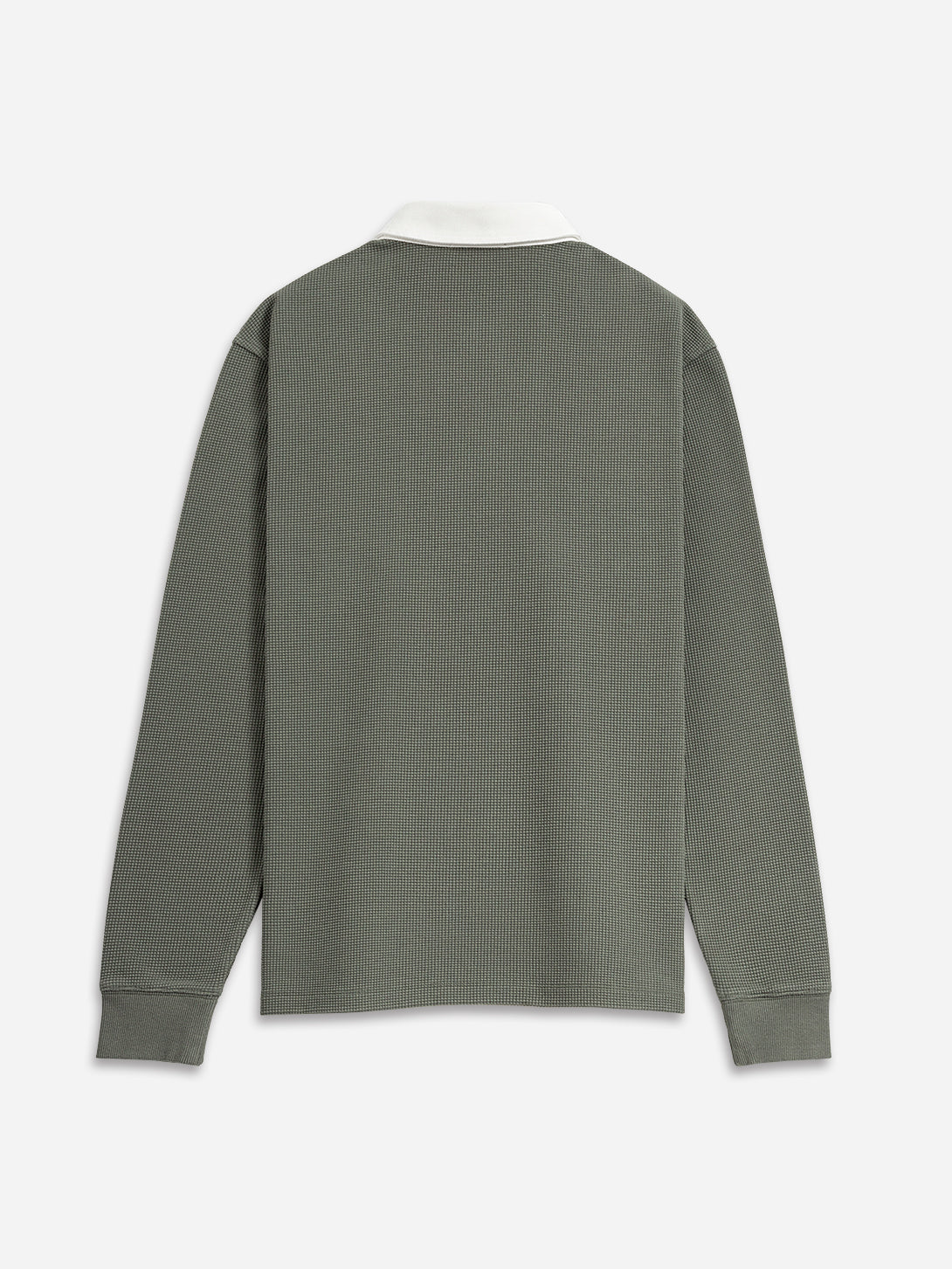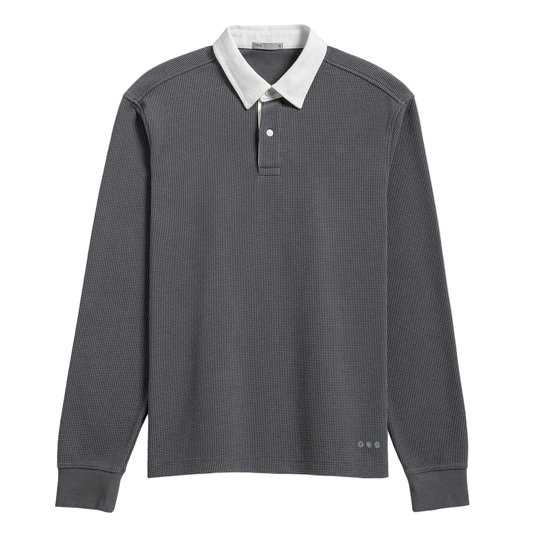 The Lind Waffle Rugby Polo features a modern, eye-catching waffle pattern that combines comfort with durability. Its relaxed fit and textured design are complemented by a cream woven collar for a stylish contrast. This timeless yet fresh rugby style elevates casual knit shirting, offering a sleek and cool look perfect for cooler weather when you need to break out a long sleeve.