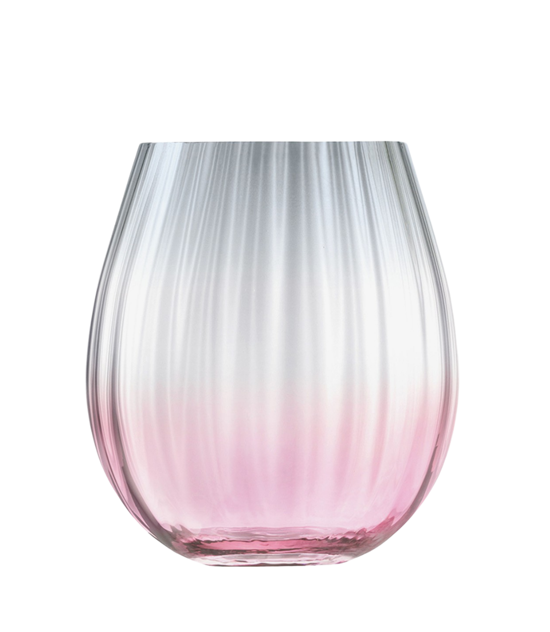 A pair of mouth-blown tumblers with fluted bowls, hand painted by skilled craftspeople with pink and grey lustre. The sheer colours diffuse towards the centre of each piece. A versatile stemless glass for water, wine or cocktails.