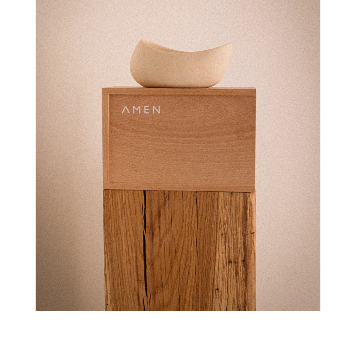 The AMEN LUZ Candle 13oz. / 375g has been created to enlighten the light sculptures crafted in collaboration with sculpteur Katharina Kaminski and also as a piece of craftsmanship on its own. Hand made in clay and hand poured in Grasse, the french capital of perfumery is available on a limited edition.