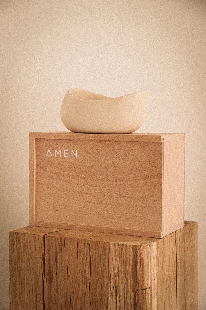 The AMEN LUZ Candle 13oz. / 375g has been created to enlighten the light sculptures crafted in collaboration with sculpteur Katharina Kaminski and also as a piece of craftsmanship on its own. Hand made in clay and hand poured in Grasse, the french capital of perfumery is available on a limited edition.