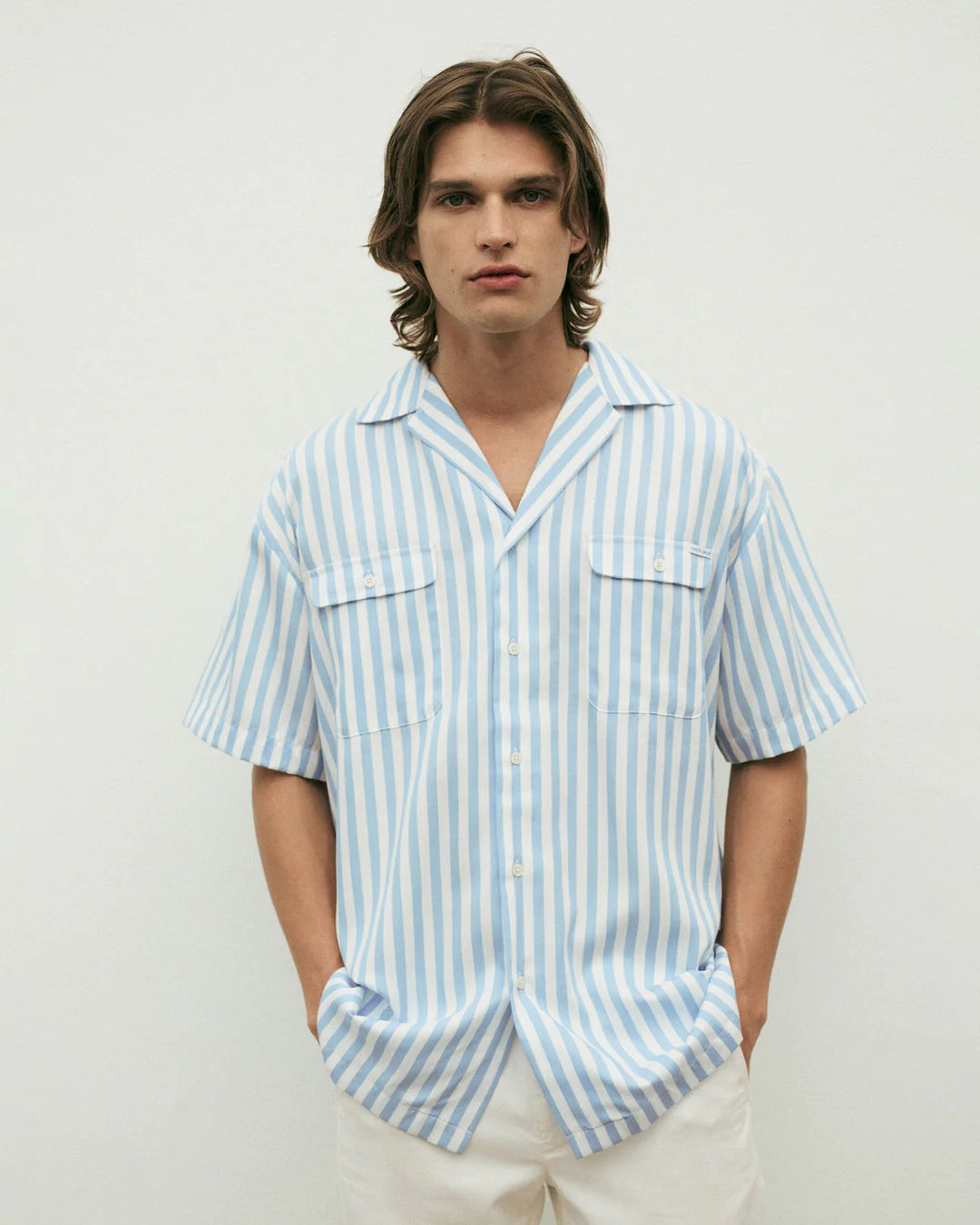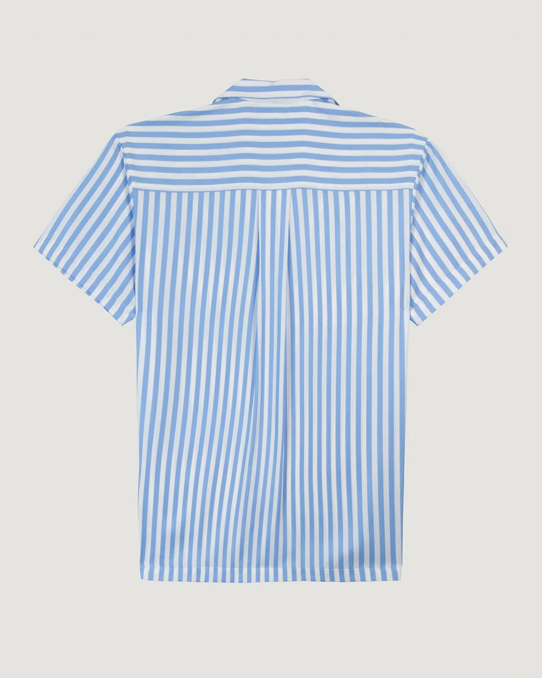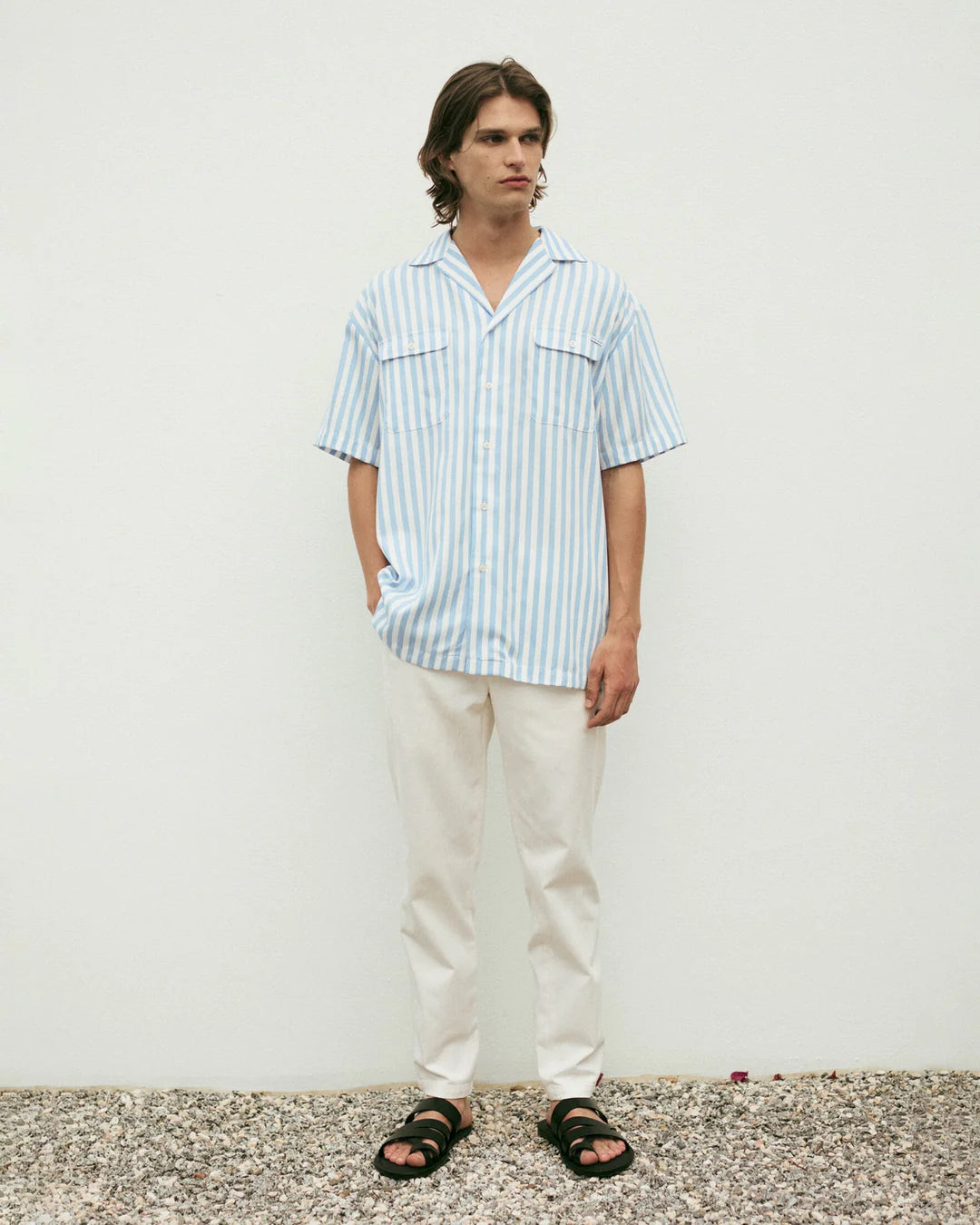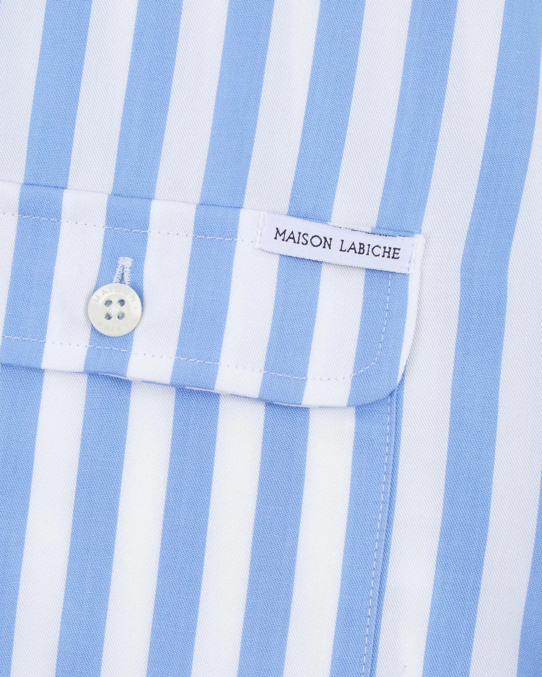 Our Laurens short-sleeve shirt has a loose fit, shark collar and Maison Labiche engraved buttons. Its label is the new Maison Labiche signature.
