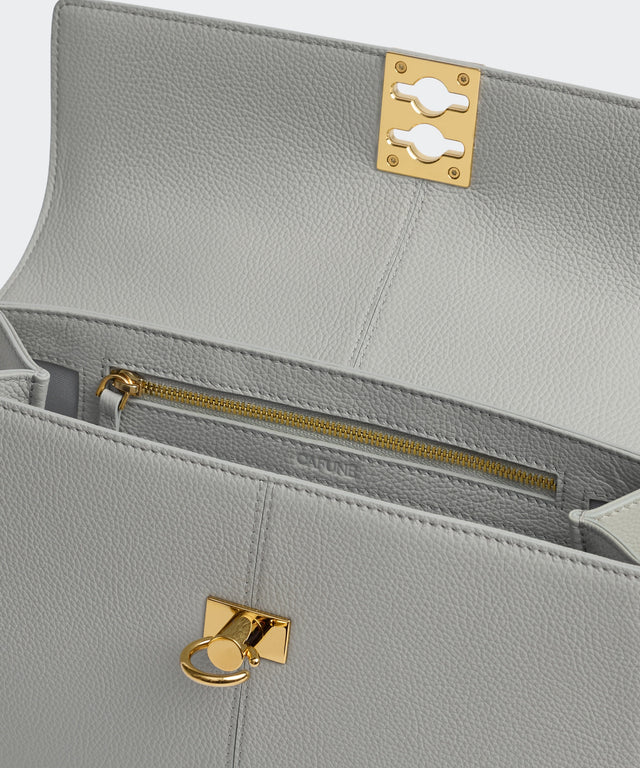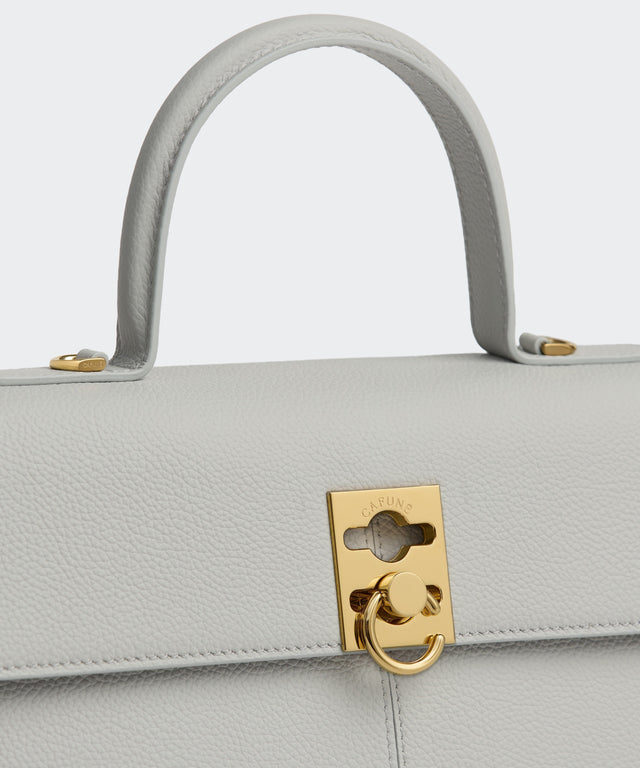 This season, the Medium Stance arrives in Morning Dew, a gentle hue that evokes the stillness of the world newly awakened. Rendered in soft pebbled Italian leather, this luxurious material offers a tactile, supple handfeel. The airy blue tone complements our signature C-Lock in gold, enhancing its glow with a sense of clarity and modern sophistication.