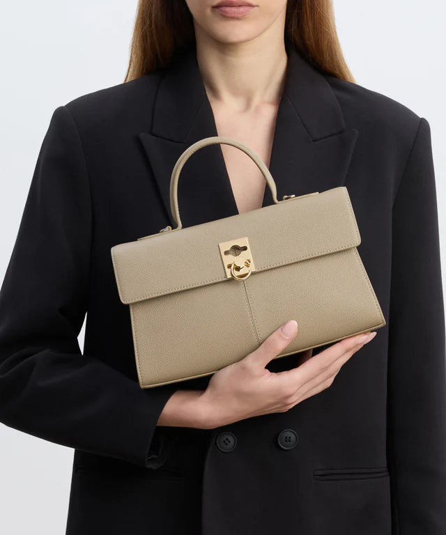 By popular demand, the colour Taupe now joins the Medium Stance collection. This understated neutral comes to life in structural, textured Italian leather, bringing both tactile depth and lasting durability. Refined yet versatile, the leather finishing sets a sophisticated backdrop for our signature C-Lock.