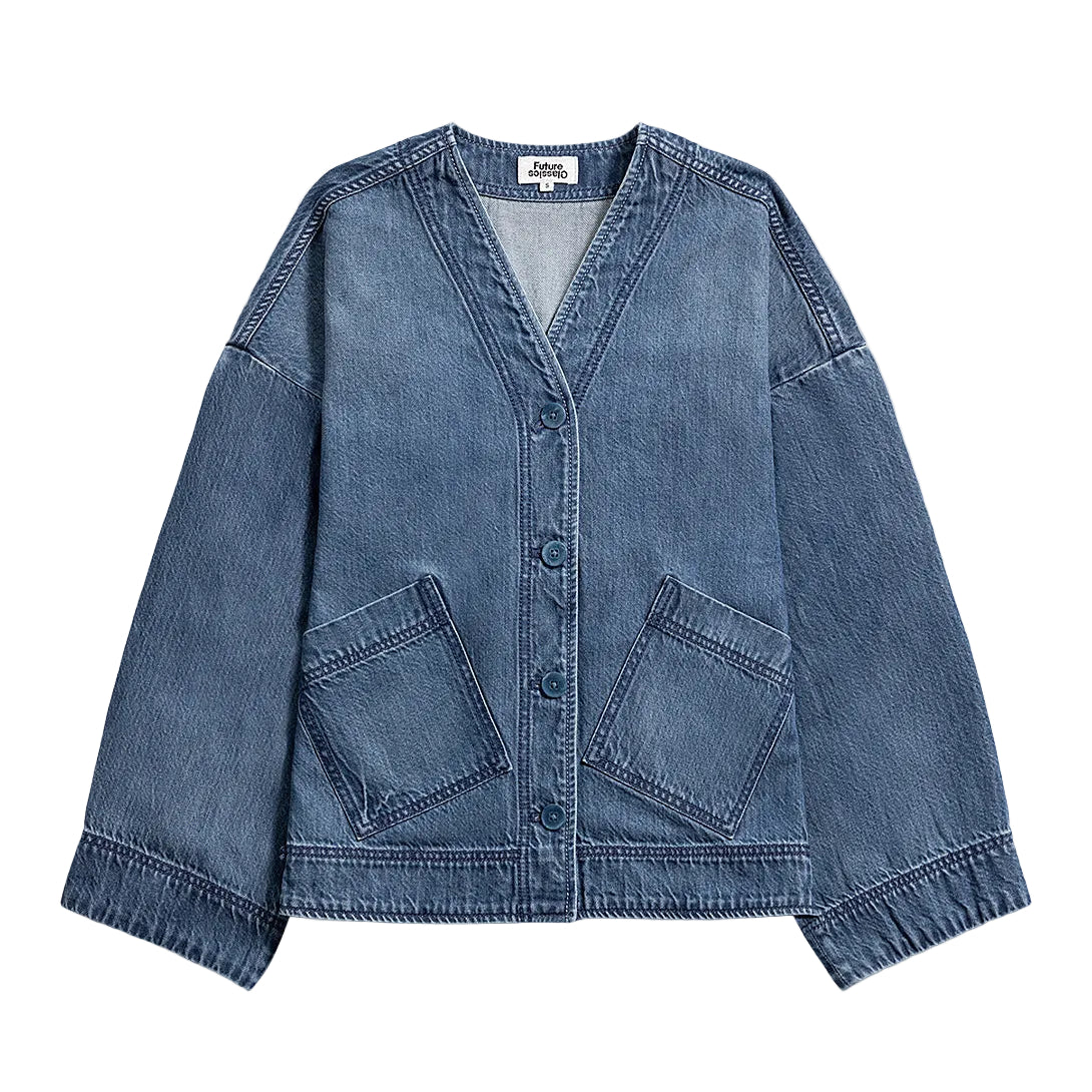 Crafted from soft cotton-Tencel slub denim, this jacket offers a smooth yet structured feel with a relaxed, loose fit for everyday comfort. The special wash brings out the slub texture, creating a naturally faded, modern look. Wave-like stitched motifs along the sleeves add a playful accent, while its easy-care, pre-shrunk finish ensures long-lasting wear and timeless appeal.