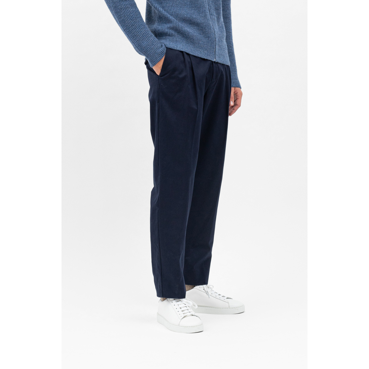 These 'Christopher Gabardine' trousers in dark navy by Norse Projects offer a tailored and versatile fit.