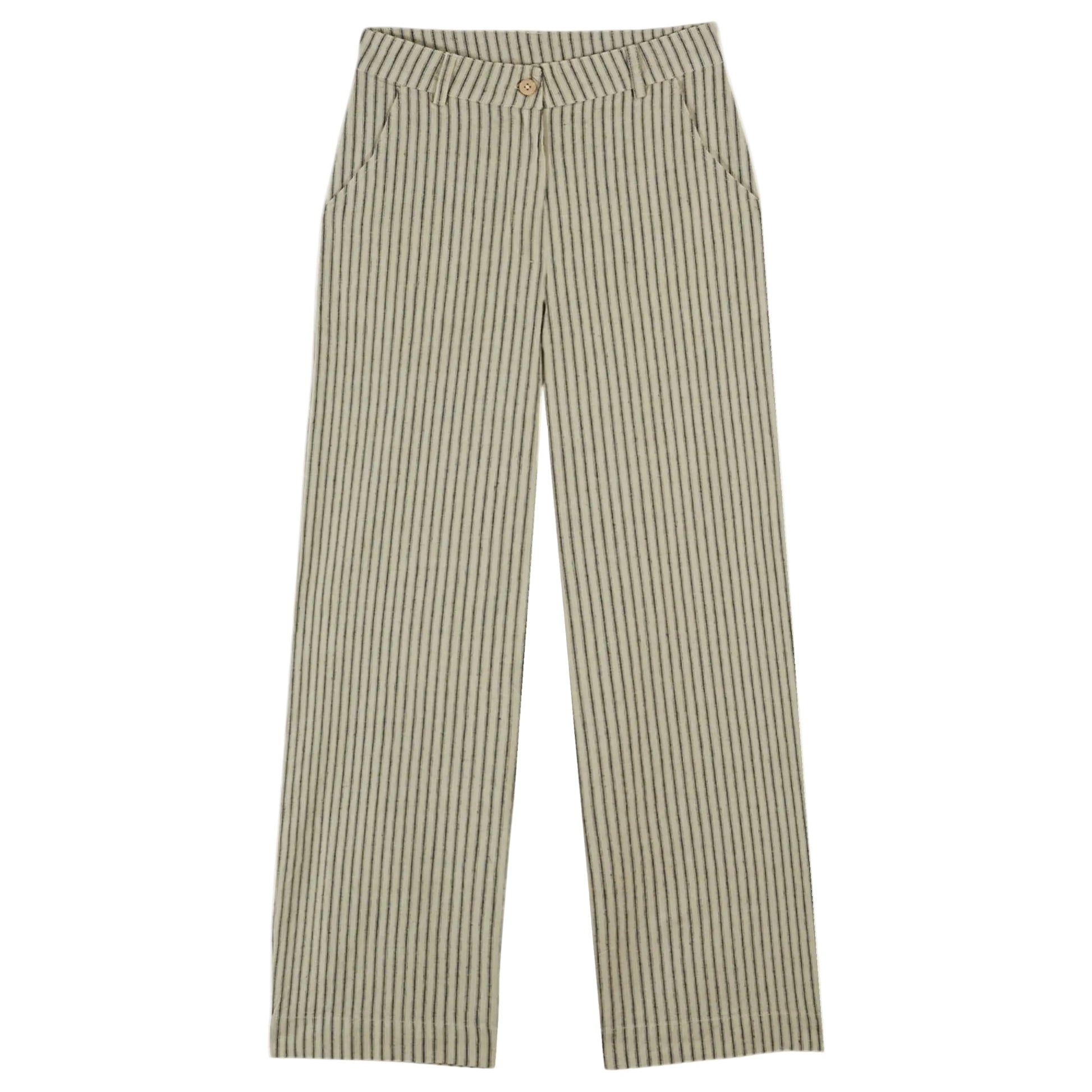 Dark ecru and black striped cotton-blend trousers. High waisted and wide legs, it has the advantage of flattering all silhouettes.