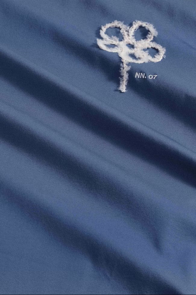 Relaxed-fitting t-shirt crafted in a mercerised organic cotton jersey interlock with a wide bottom hem and completed with embroidery at the chest.