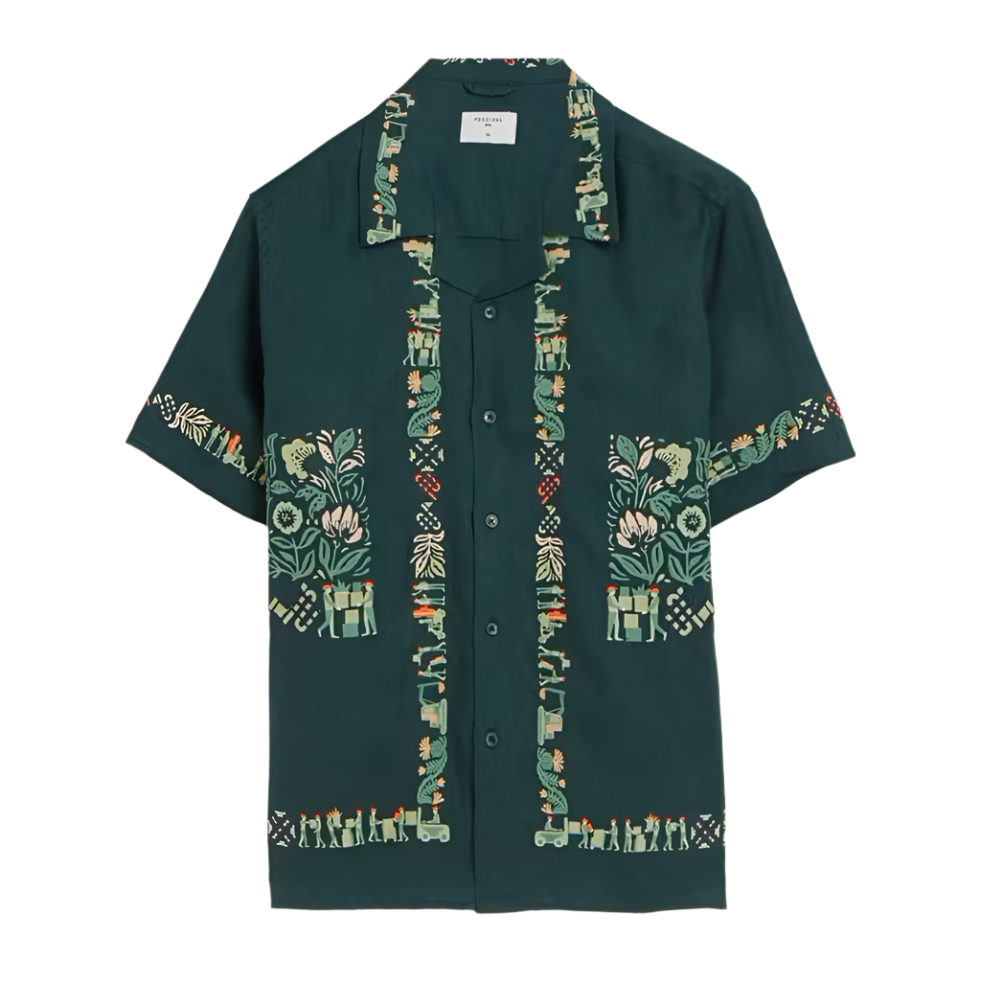 Classic Percival quality embroidery 100% linen shirt. No punctuation, that was a straight up statement. Part of the AW Antiquities collection, a collection of fine fabrics, quality make and of course that signature Percival spice, and/or embroidery. Forest green hue with hand drawn detailed down to the last stitch embroidery.