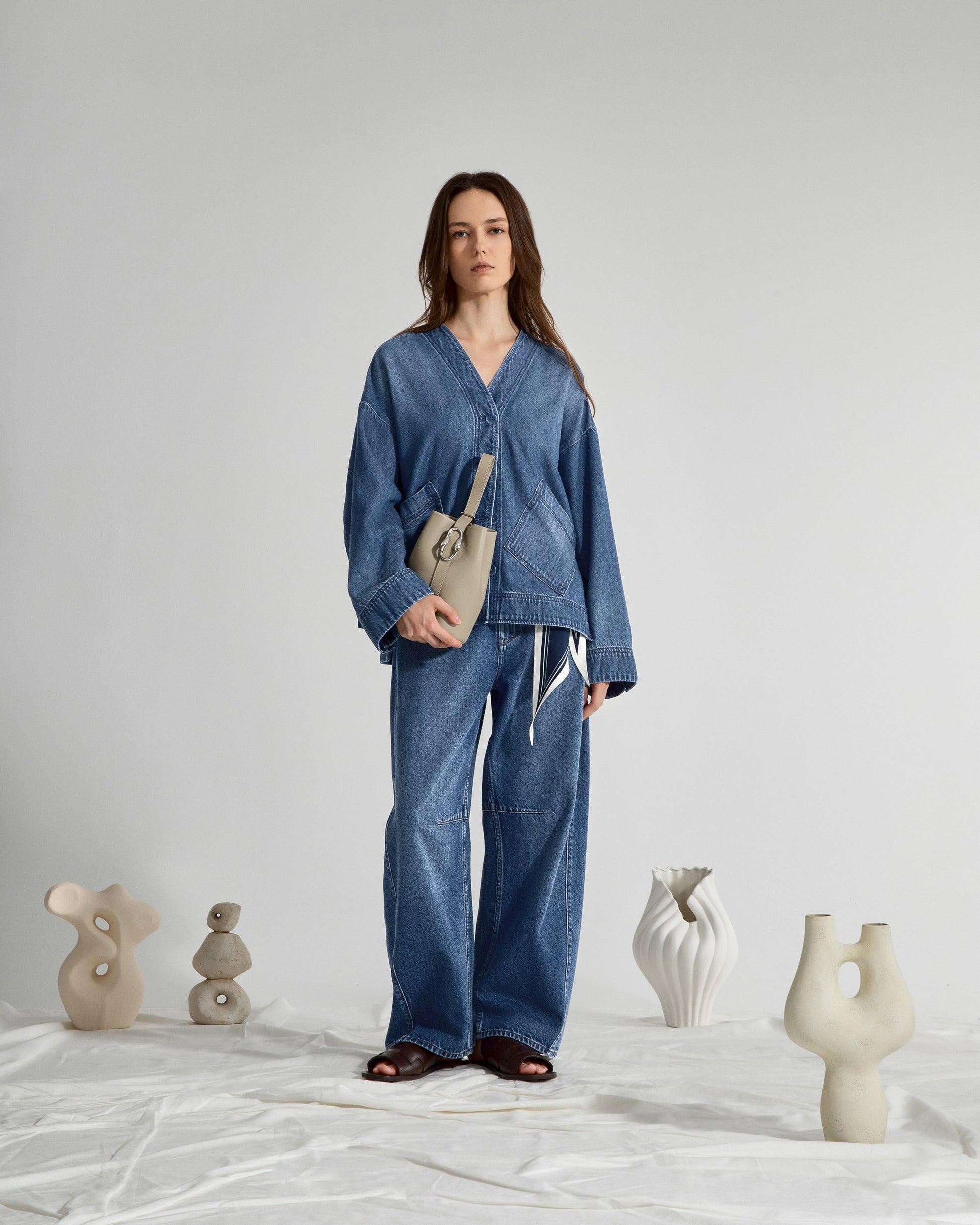 Sculpted seams curve gently around the leg, giving these jeans a distinctive rounded volume with a neat waist and tapered hem. The mid-weight denim offers structure without stiffness, so the shape feels easy and relaxed through the hip and thigh. Pre-washed and pre-shrunk, they hold their silhouette while remaining comfortable for everyday wear.