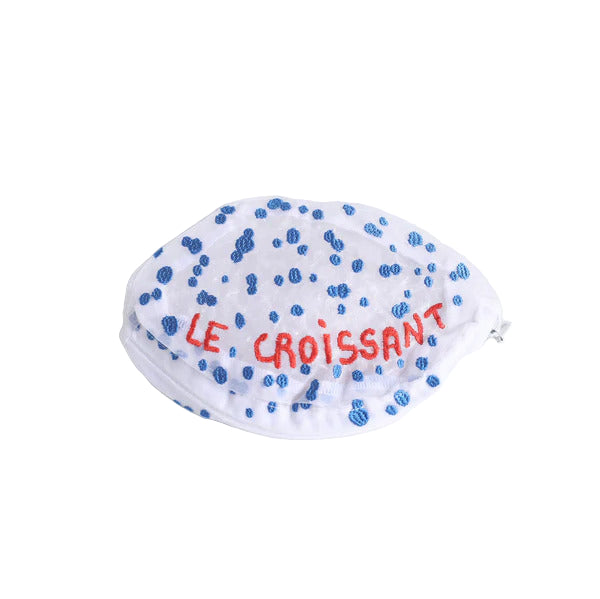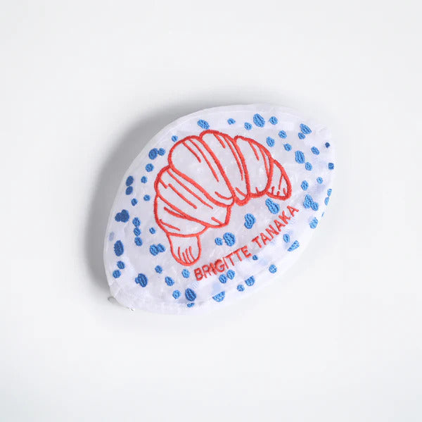 Brigitte Tanaka revisits with humor and poetry an emblematic culinary symbol of French culture: the croissant. At the same time light, transparent and decorated with bright red embroidery, this organza pocket plays on the codes of everyday and tradition.
