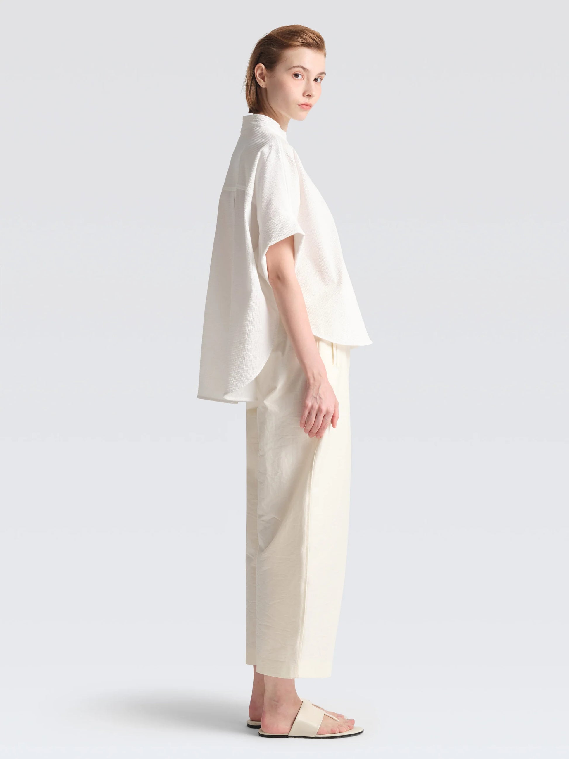 A relaxed update on classic tailoring, the ALWYN shirt is crafted from cotton seersucker in timeless stripes. With a rounded hem that dips slightly at the back, it pairs perfectly with smart tailoring for a modern, effortless look.