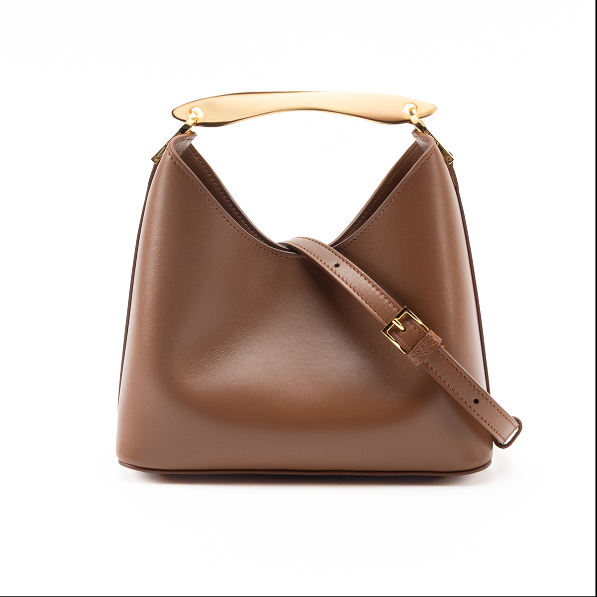 With its compact size, luxurious craftsmanship, and sophisticated metal top handle, the Boomerang Small pays homage to Elleme's signature aesthetic