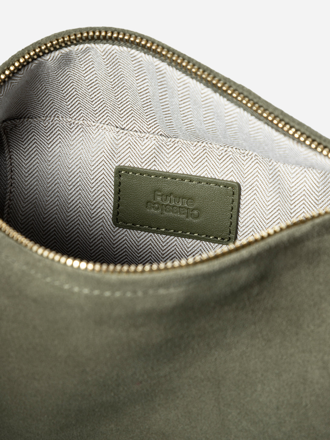 Our signature Small Loaf Crossbody in soft suede, a trendy design for those who are on the move and prefer to have their hands free. Its loaf shaped silhouette gives it a distinctive and playful look. The bag features an adjustable shoulder strap adorned with branded rivet studs. Crafted with attention to detail, despite its smaller size, it offers sufficient space to carry your essentials and a bit more. Made from soft suede with a water-repellent finish, this piece is a practical and stylish addition to your winter wardrobe.