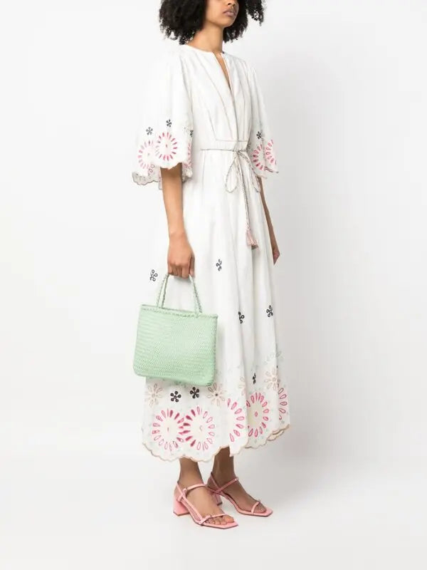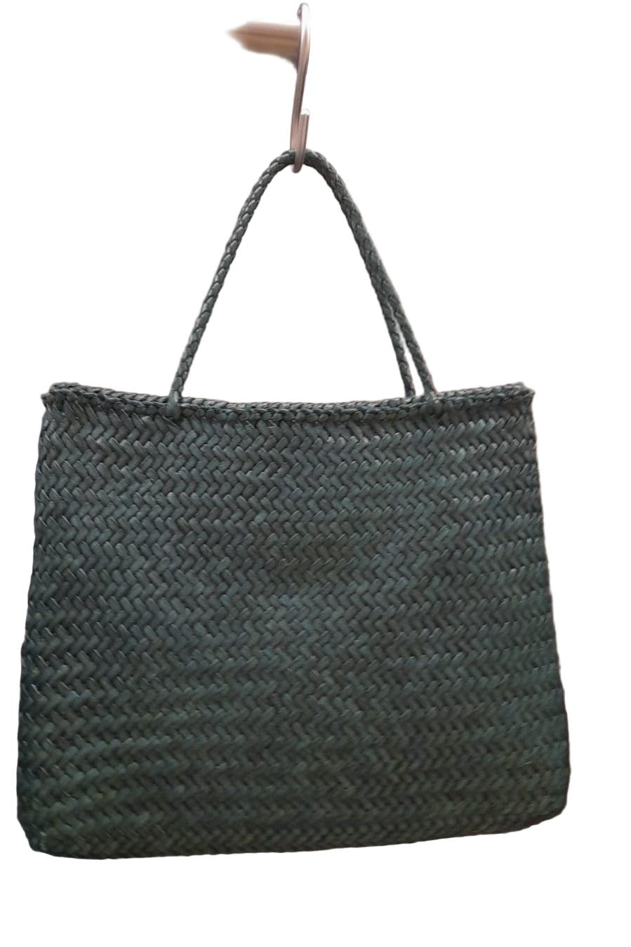 This classic brown leather handbag from Dragon Diffusion is made from top-quality materials. The double-braided handles give it a sophisticated look and feel. The leather is soft to the touch and has a clean, elegant look. The bag has a spacious interior with one main compartment and two side pockets.