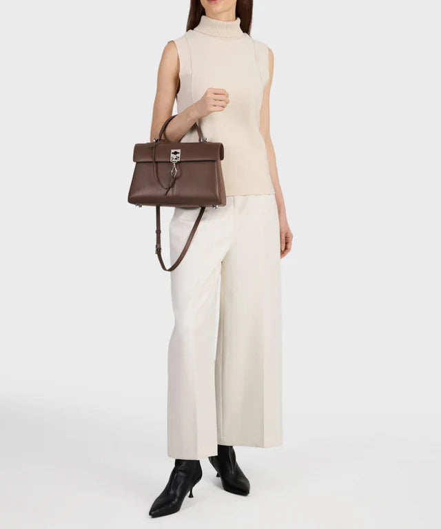Discover the refinement of the Stance Bag in Dark Rosewood, a style dedicated to modern women, now available in a new lush and earthy shade. Inspired by the timeless design of vintage briefcases, the iconic Stance Bag combines sophistication with functionality. Crafted from premium Italian pebbled leather, this top-handle bag carries a subtle and versatile shade that is easily wearable. Adorned with silver C-Lock hardware, the new Stance Bag captures the essence of discerned style.