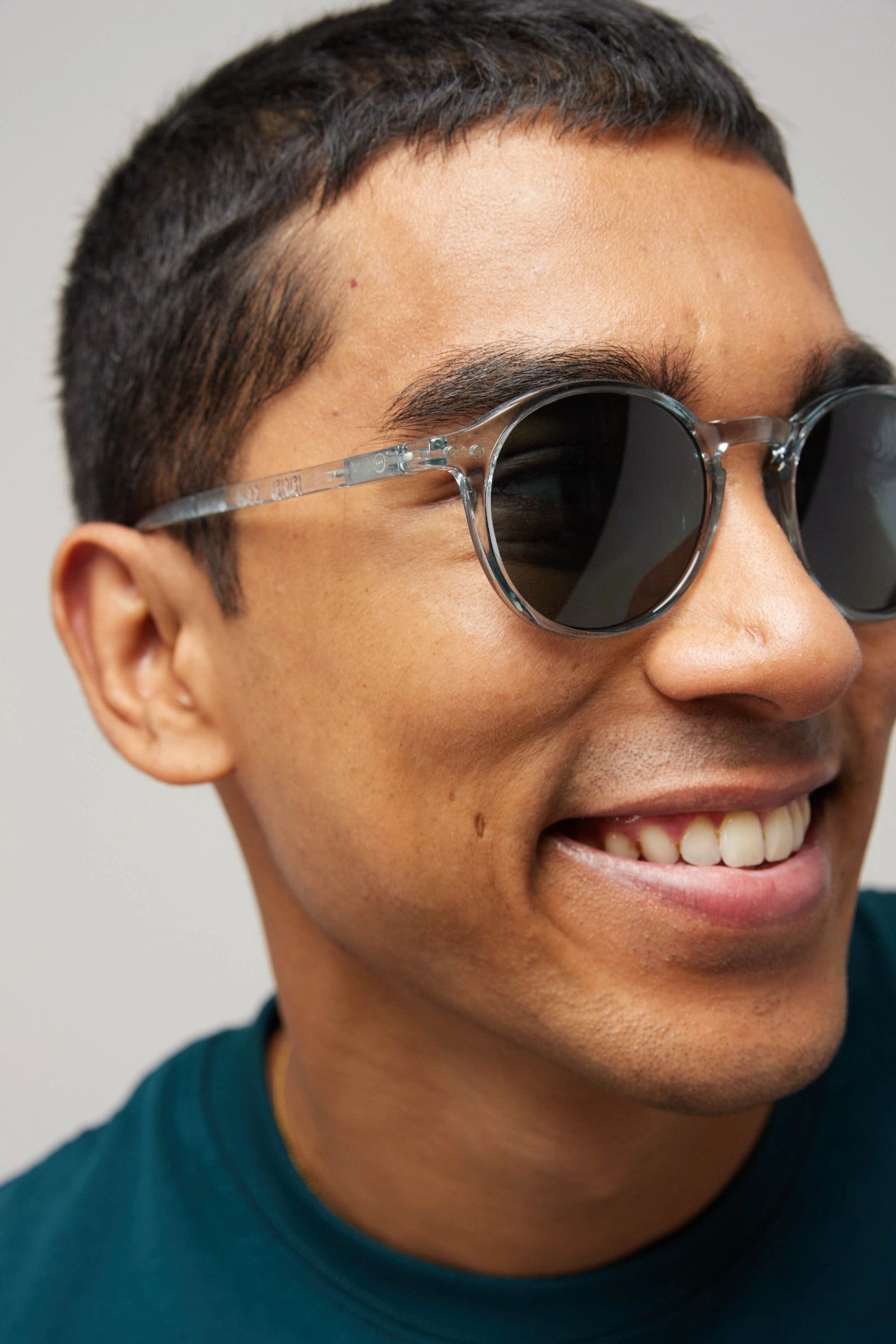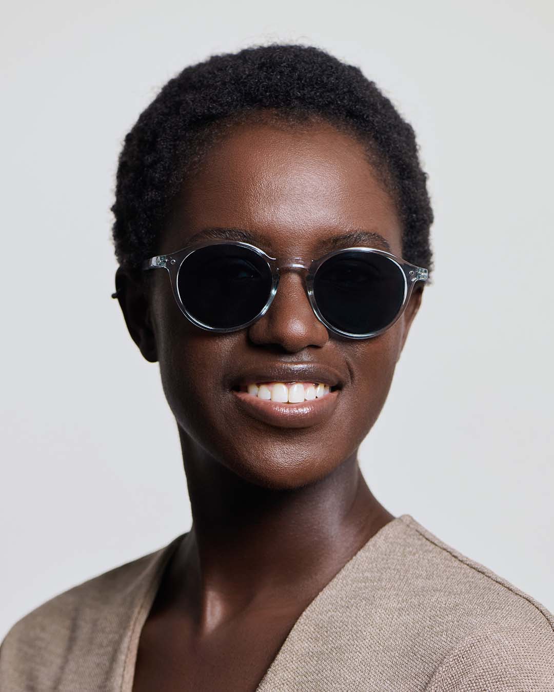 Sunglasses - #D shape: round, timeless, best-seller - Crystal, shiny and bio-sourced frame - 100% UV Category 3 protection - Unisex and universal model - Storage pouch included in the box