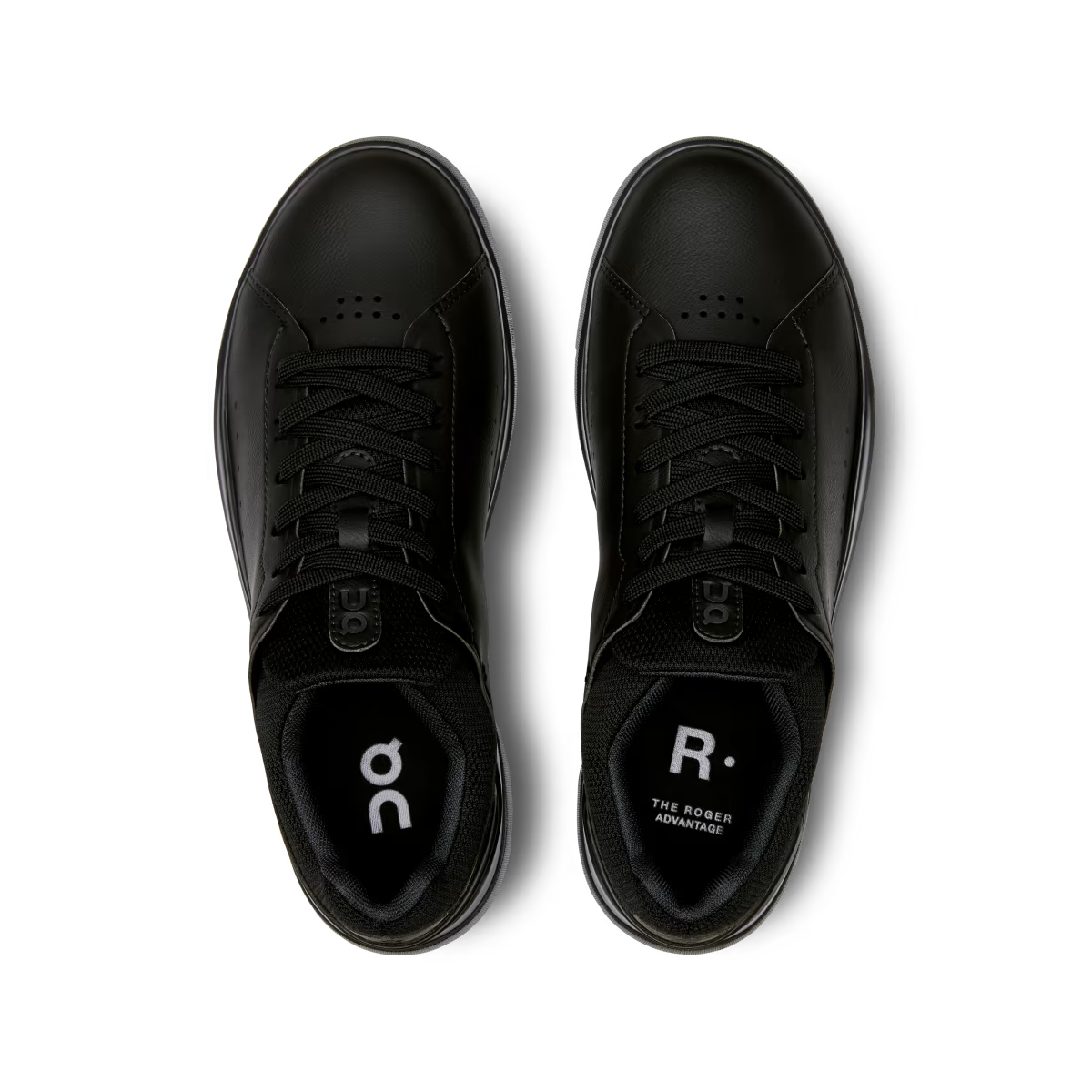 These 'Advantage Leather' sneakers by On Running for women come in a classic all-black design.