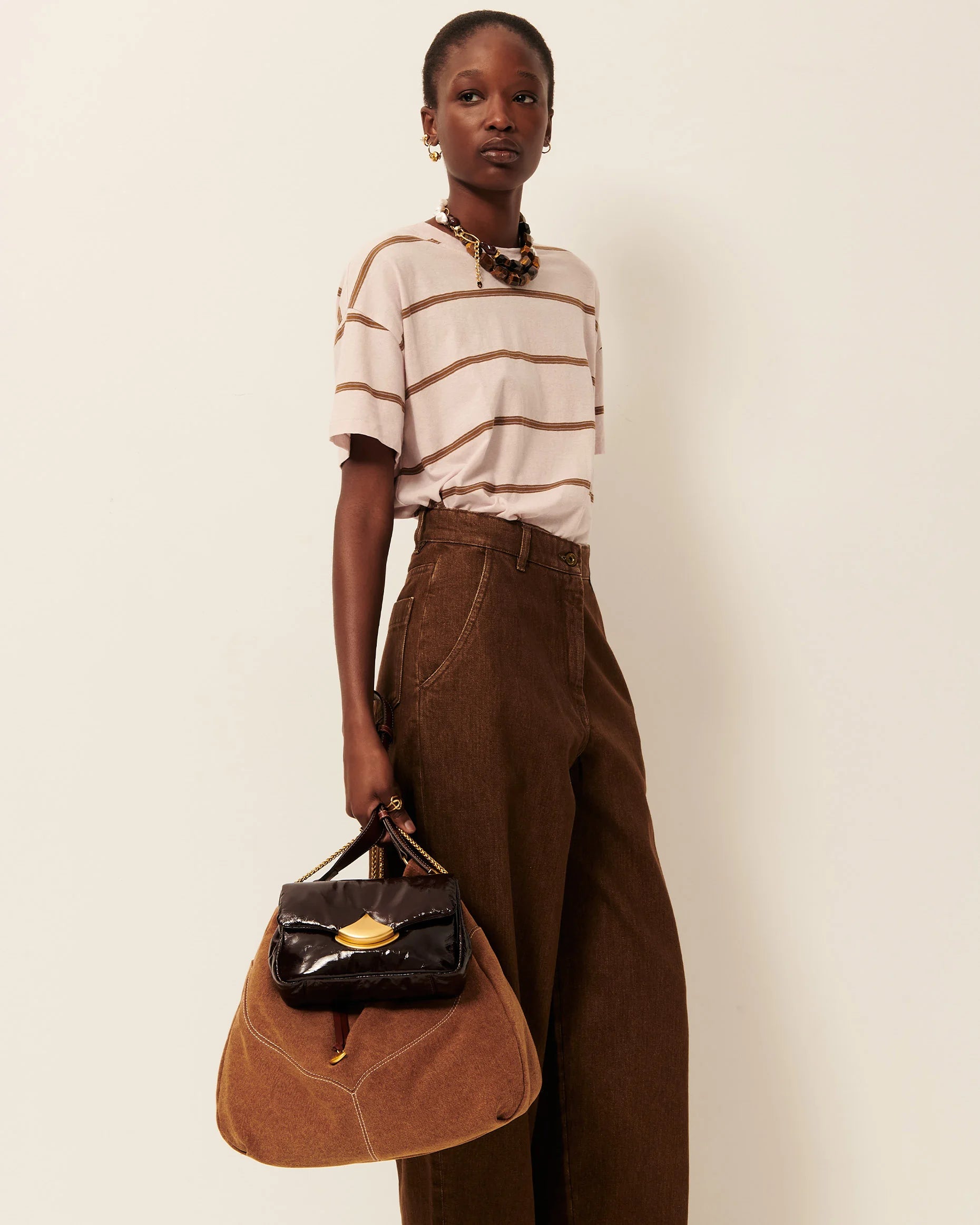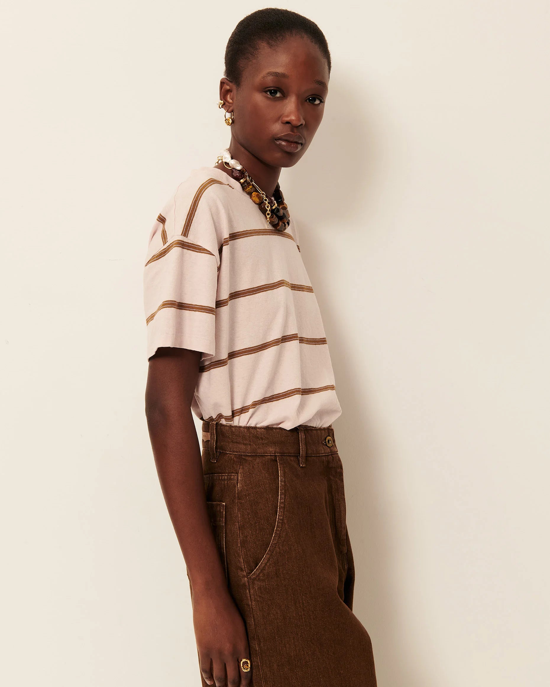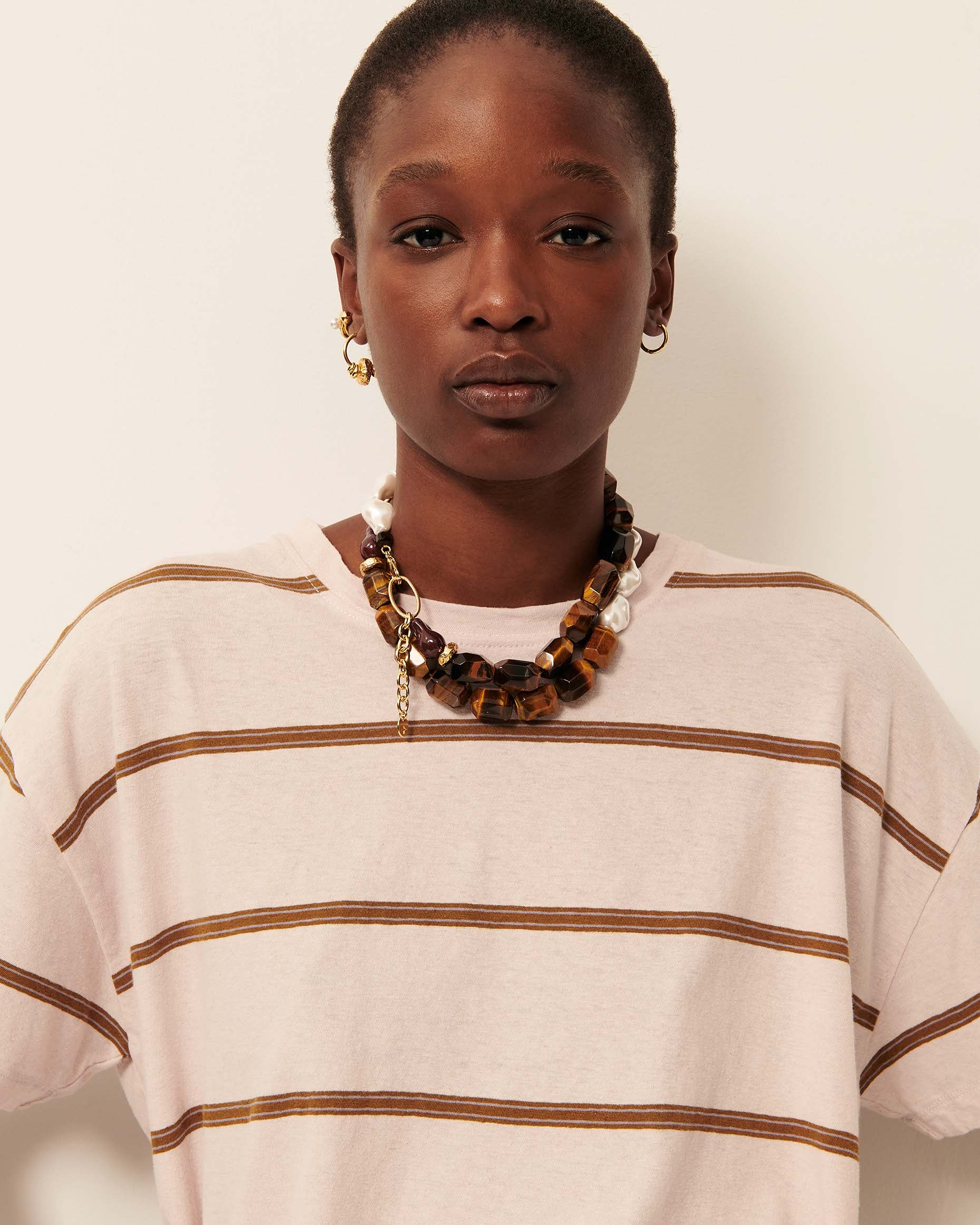 Loose-fitting short-sleeved T-shirt in striped cotton and linen jersey, crafted in Portugal.
