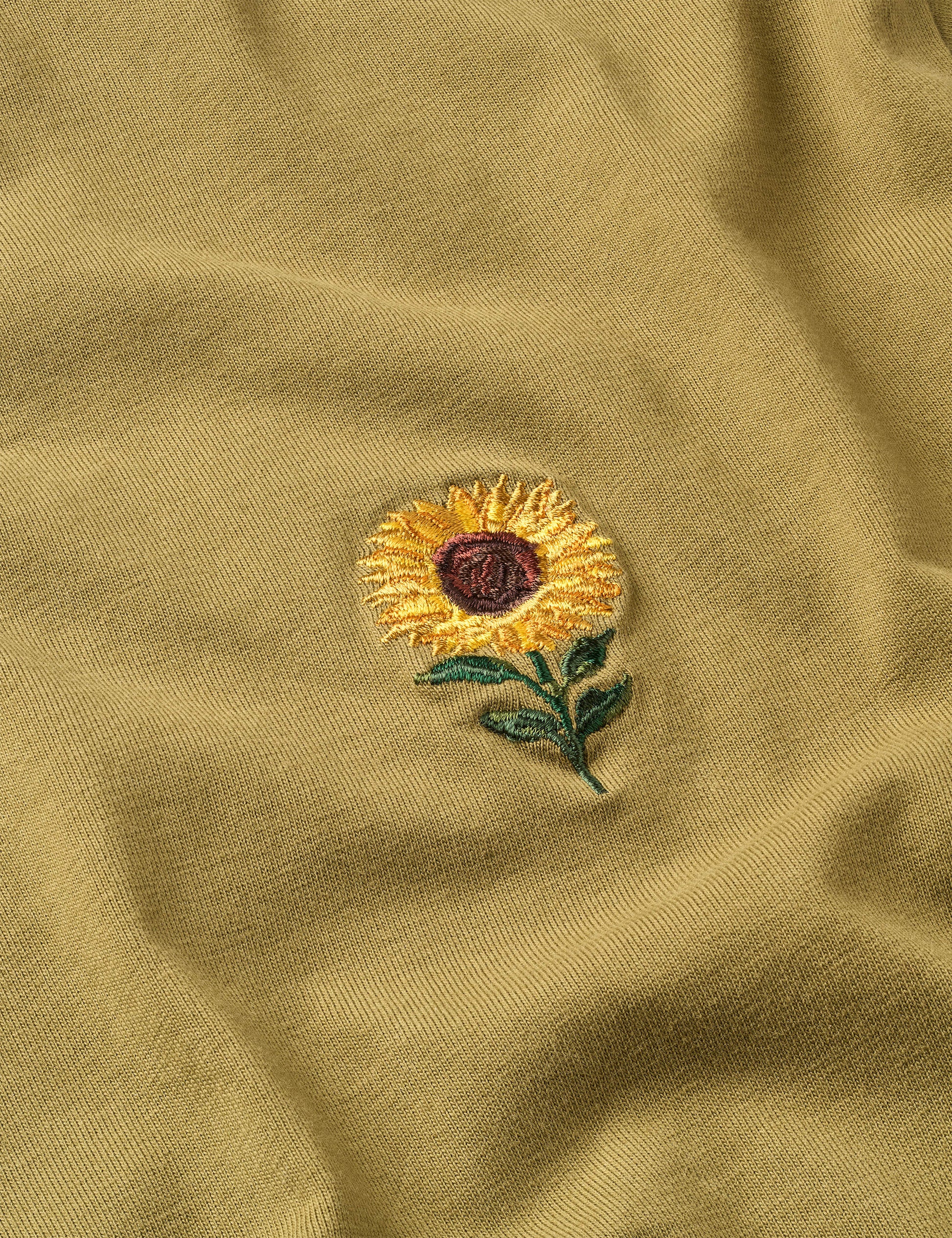 A classic fit t-shirt featuring an embroidered sunflower on the chest. Part of the "Everybody Loves the Sunshine" collection, it comes in soft cotton for everyday comfort.