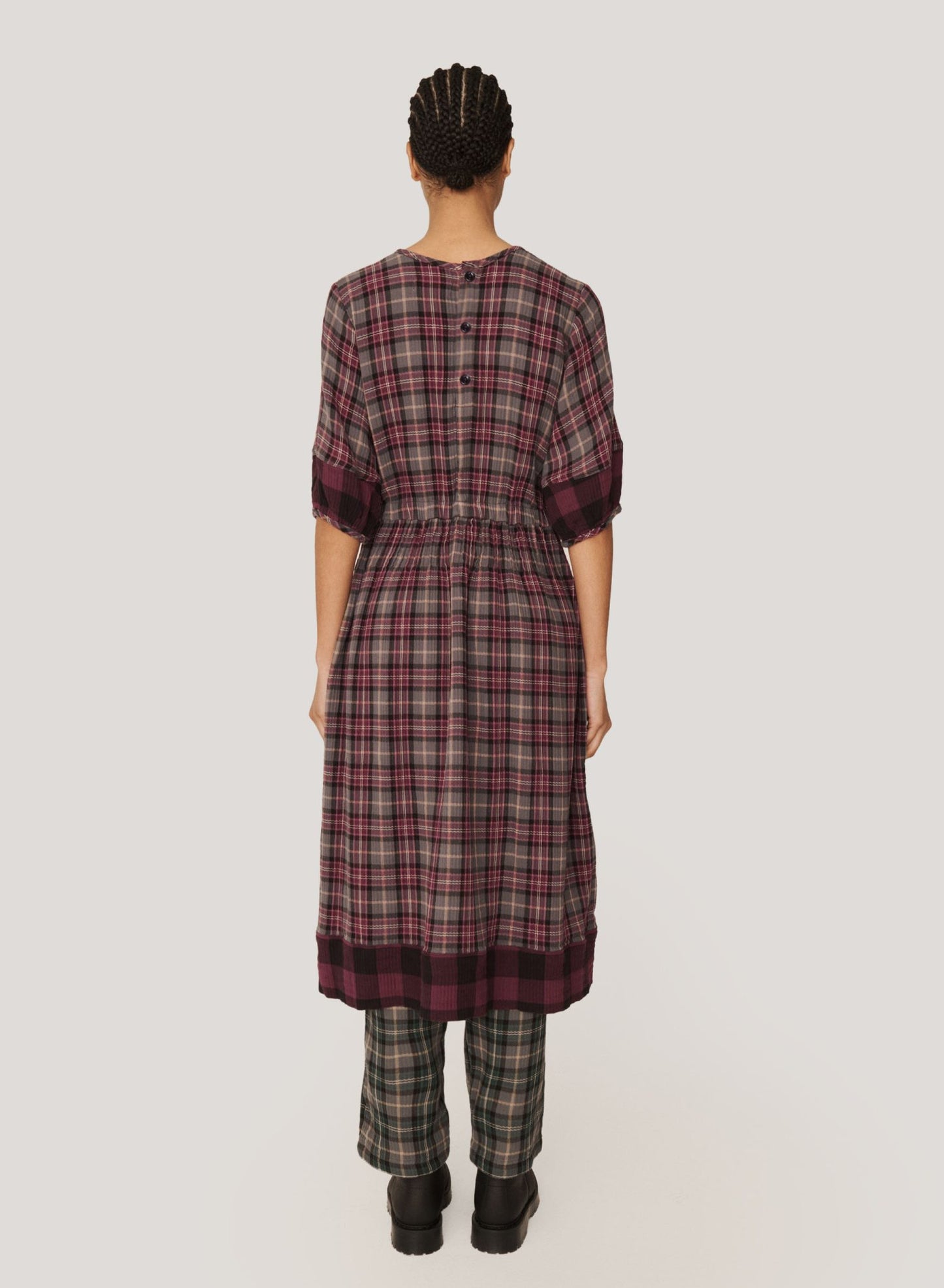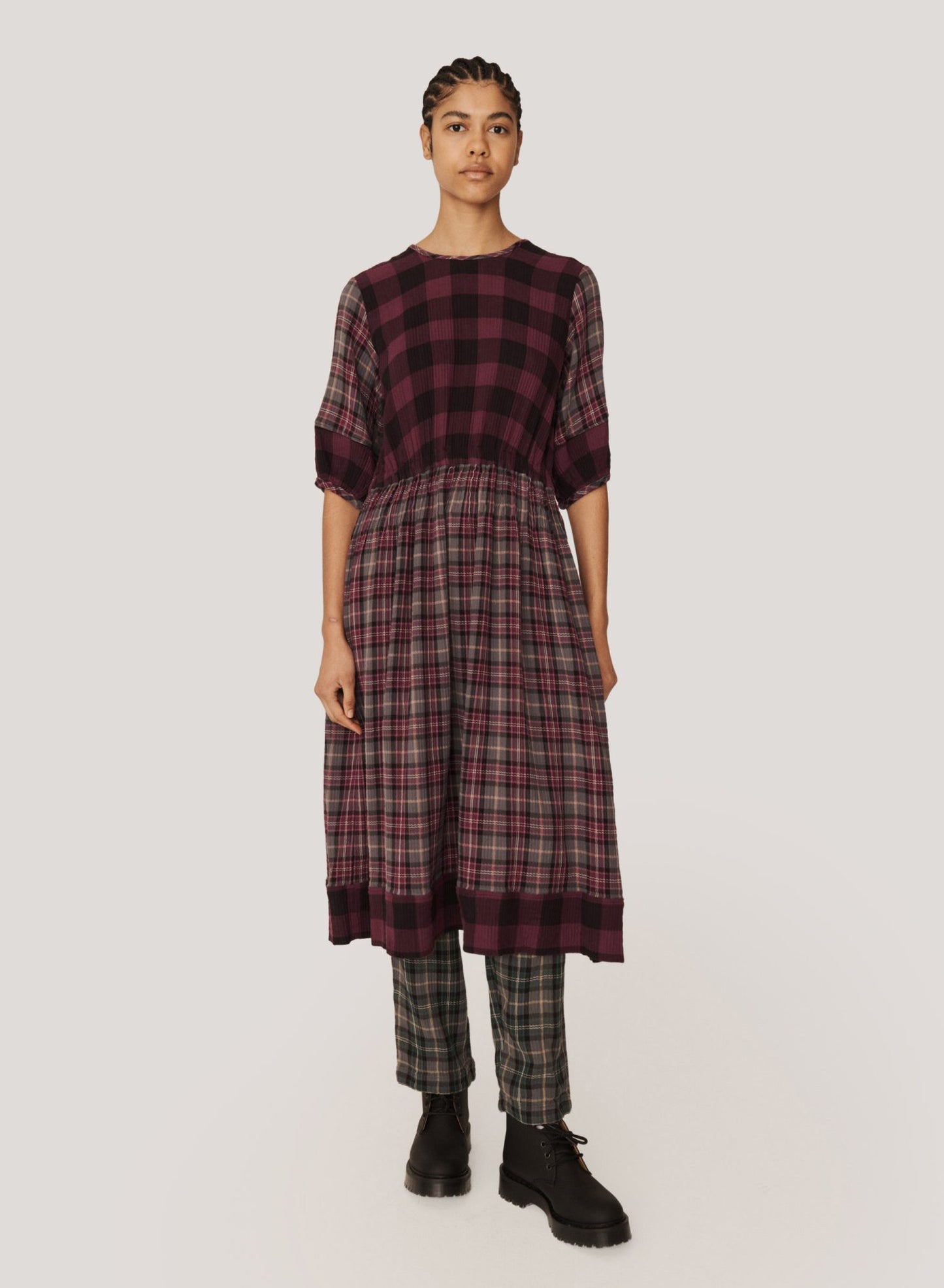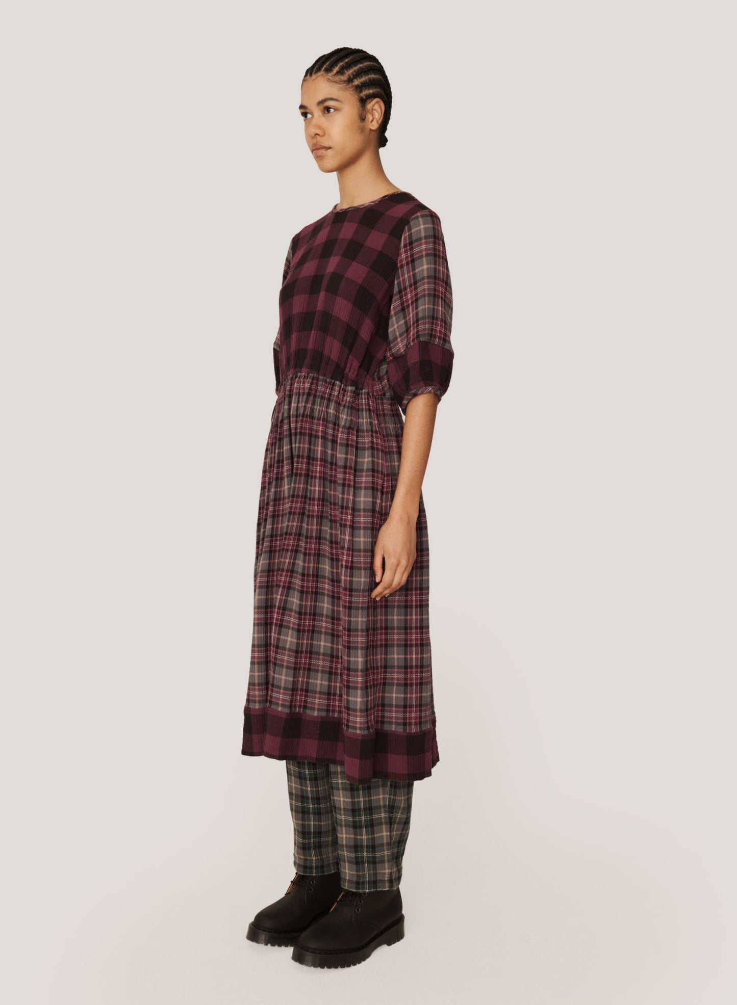 This burgundy dress features a vibrant 'garden' inspired multi-print for a unique look.